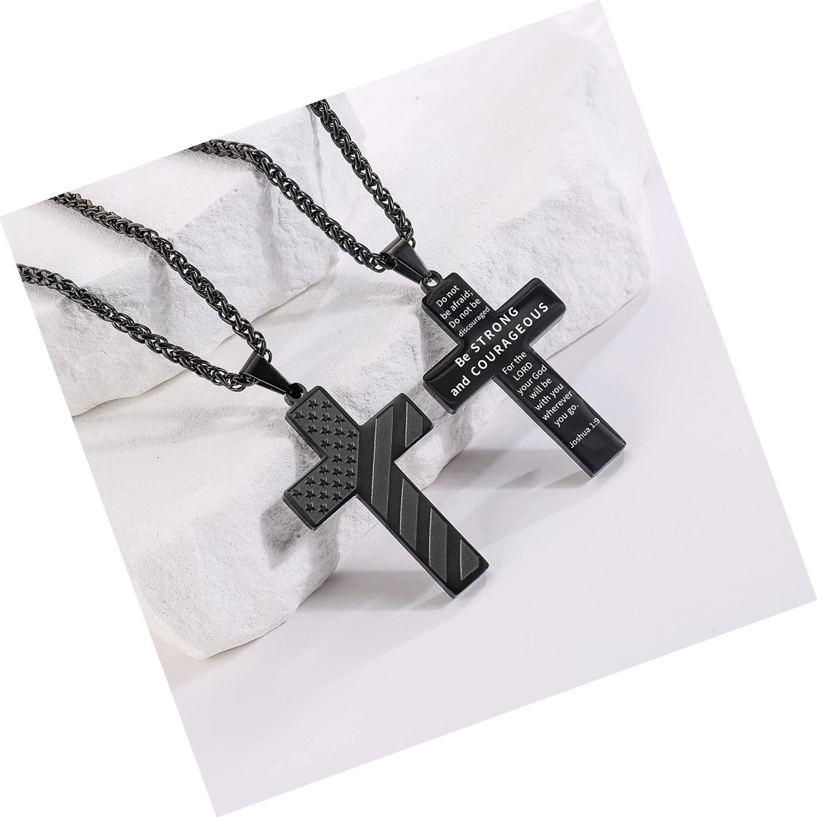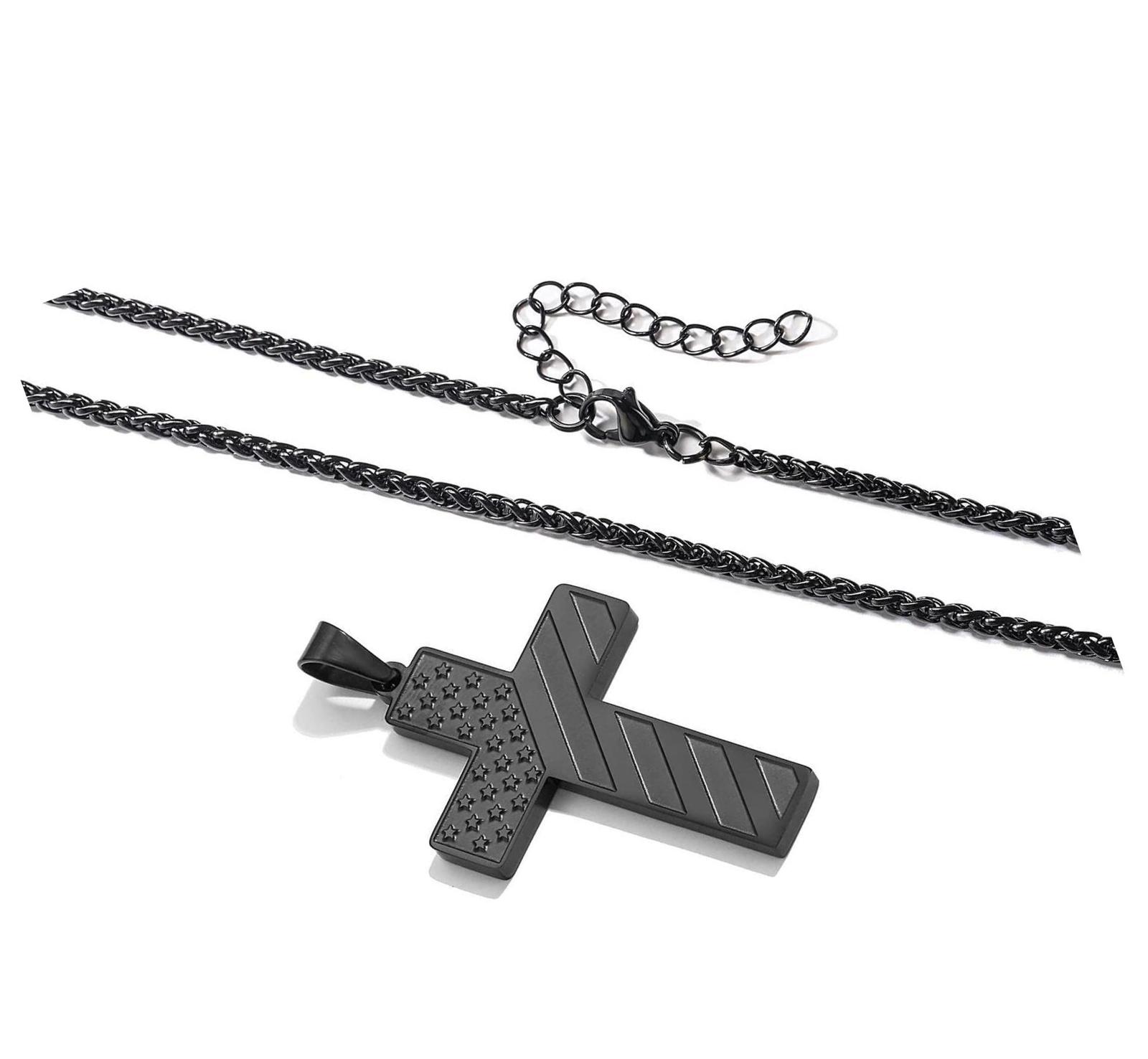 18+2 Inch Cross Necklace Bible Verse Stainless Flag
