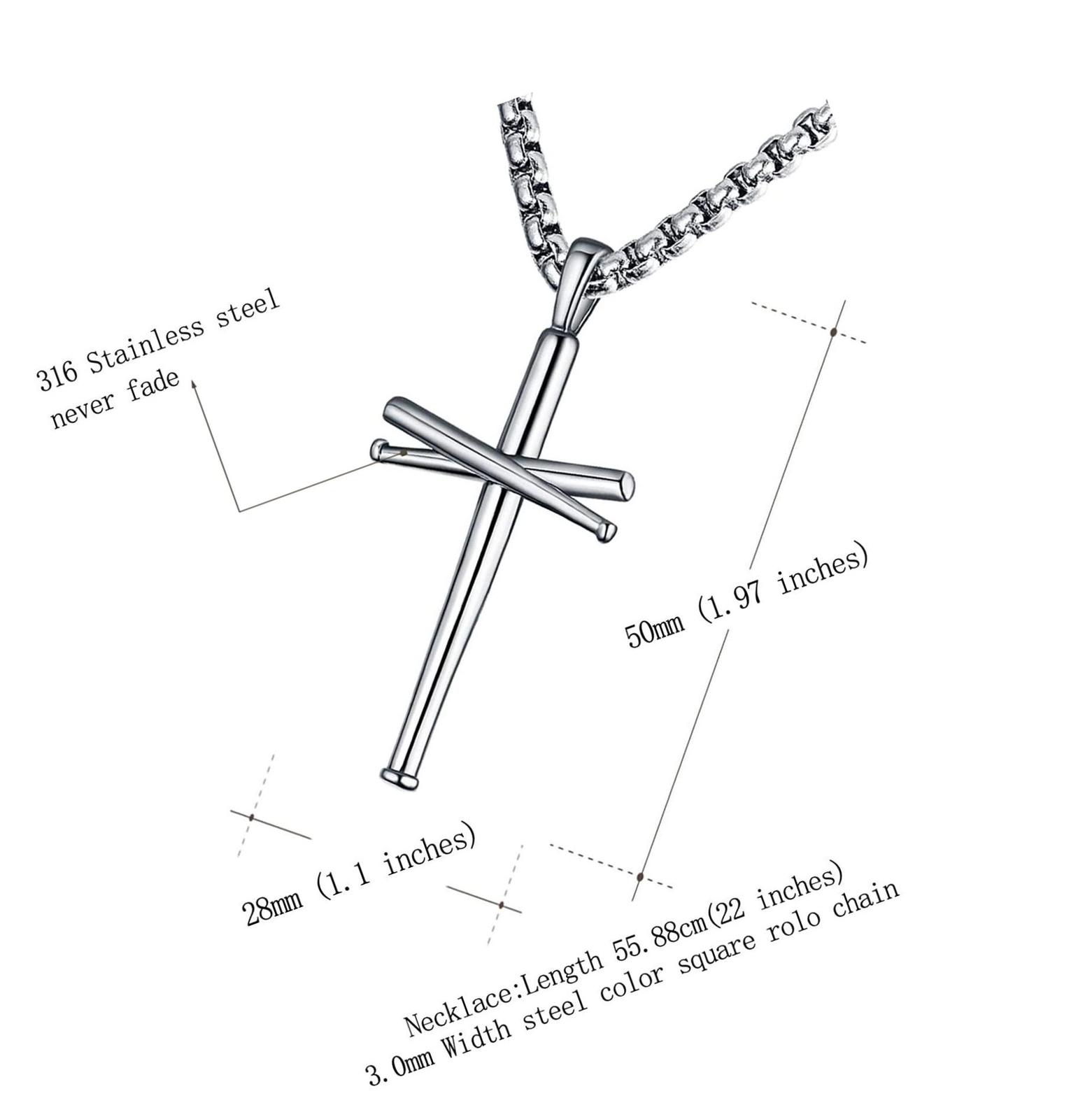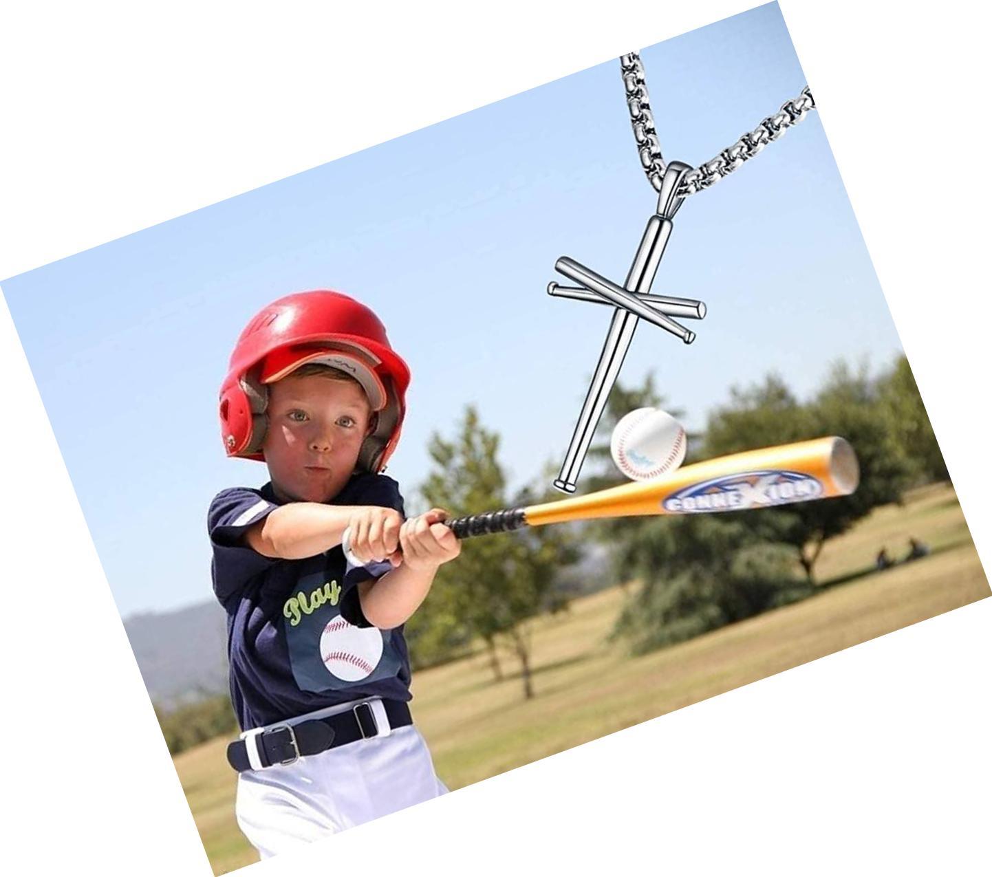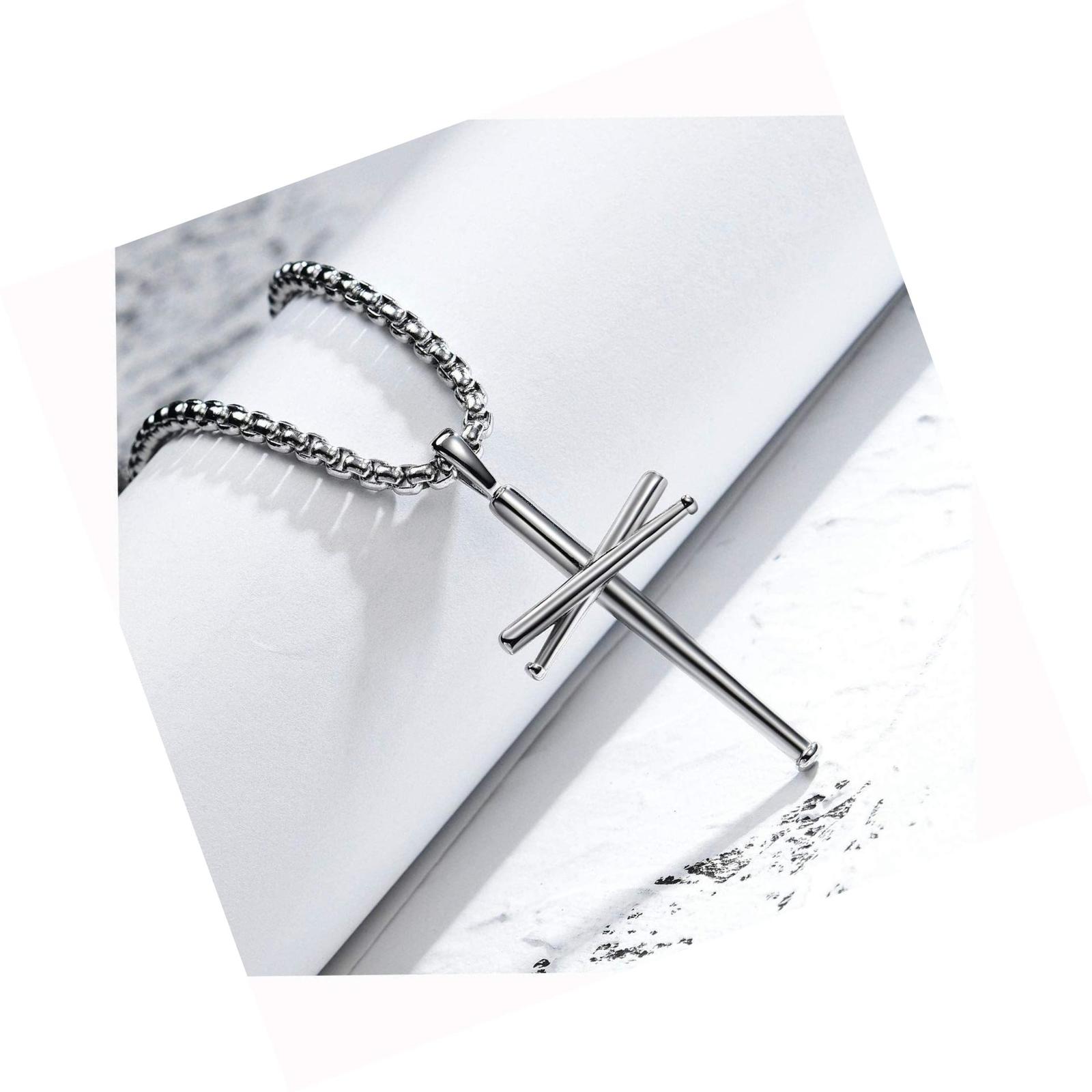 Baseball Cross Pendant Necklace.Baseball Bats Steel