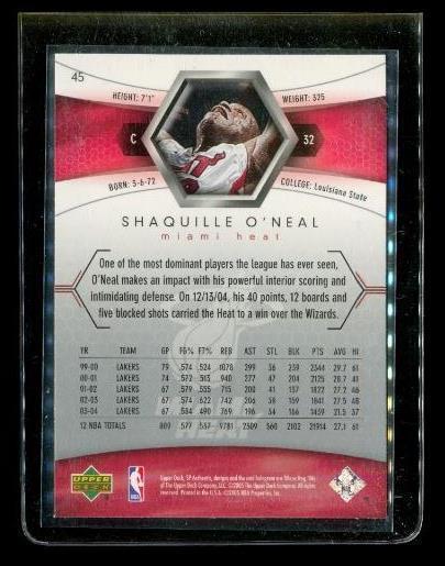 2004-05 UPPER DECK SP AUTHENTIC Basketball Card #45 SHAQUILLE O'NEAL Miami Heat
