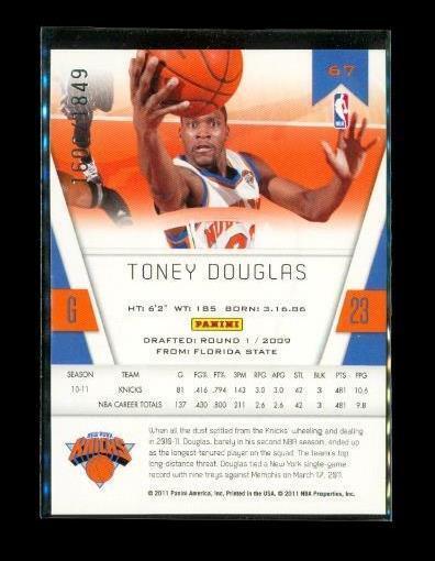 2010-11 PANINI CERTIFIED Chrome Basketball Card #67 TONEY DOUGLAS Knicks /1849