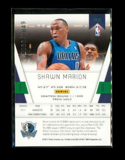 2010-11 PANINI CERTIFIED Chrome Basketball Card #82 SHAWN MARION Dallas Mavericks Limited Edition 0030/1849