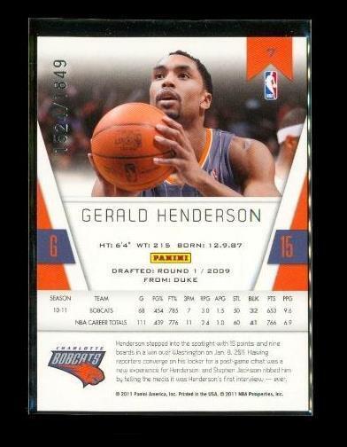 2010-11 PANINI CERT Chrome Basketball Card #7 GERALD HENDERSON Bobcats 1524/1849