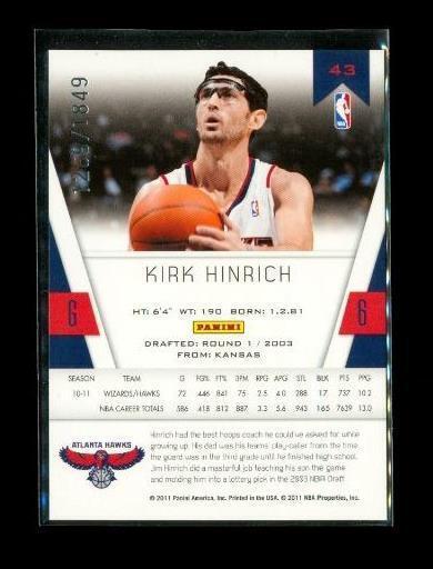 2010-11 PANINI CERTIFIED Chrome Basketball Card #43 KIRK HINRICH Atlanta Hawks Limited Edition 1269/1849