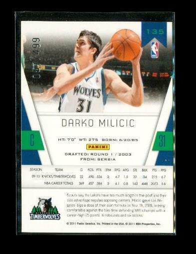 2010-11 PANINI CERT RED Basketball Card #135 DARKO MILICIC Timberwolves 057/499