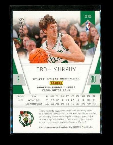 2010-11 PANINI CERT RED Chrome Basketball Card #28 TROY MURPHY Celtics 073/499