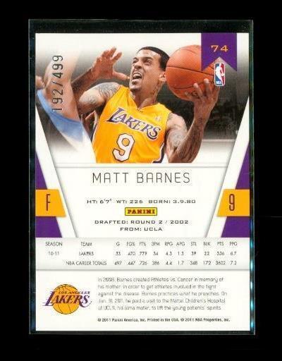 2010-11 PANINI CERTIFIED RED Chrome Basketball Card #74 MATT BARNES Lakers /499