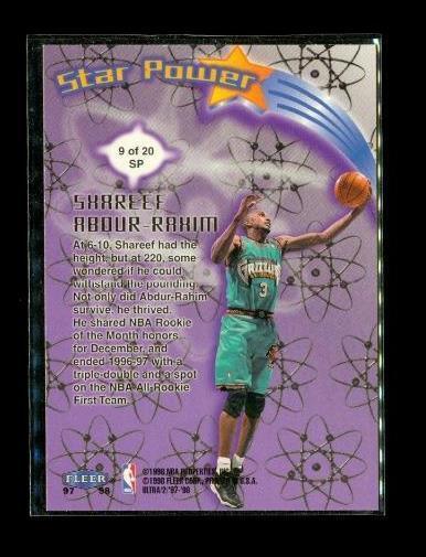Vintage 1997-98 FLEER ULTRA STAR POWER Basketball Card #9 of 20 SHAREEF ABDUR-RAHIM Vancouver Grizzlies