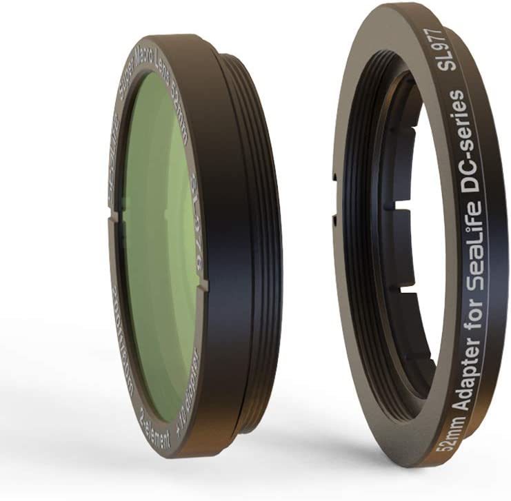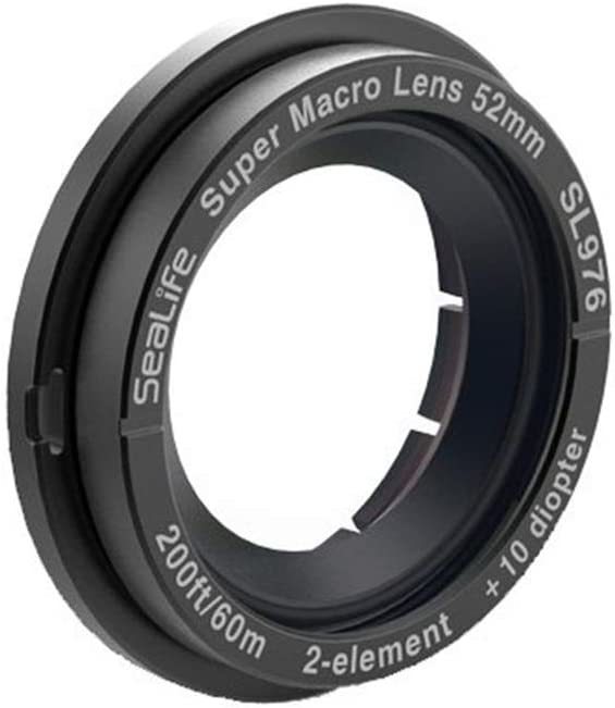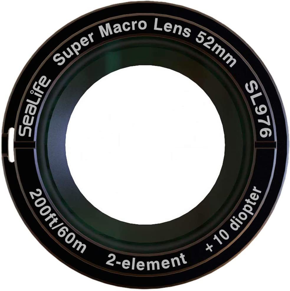 MADE FOR ? The super macro lens was created to fit DC-Series underwater cameras, using the lens in combination with the DC2000 Super Macro focus mode results in enlarging the subject by 4X 2-ELEMENT OPTICAL GLASS - The lens features a +10 diopter, 2-element optical grade lens with broadband anti-reflective coating CONSTRUCTION - Anodized aluminum construction with SL977 52mm adapter for mounting lens to any SeaLife DC-series housings BOX INCLUDES ? DC-Series Super Macro Lens (SL976), 52mm adapter (SL977), safety lanyard, protective pouch FEATURES ? The lens captures stunning macro images from 1.5" to 4" (4cm to 10cm) and allows to decrease the shooting distance, from about half the distance, quick and easy push-on attachment on land or underwater