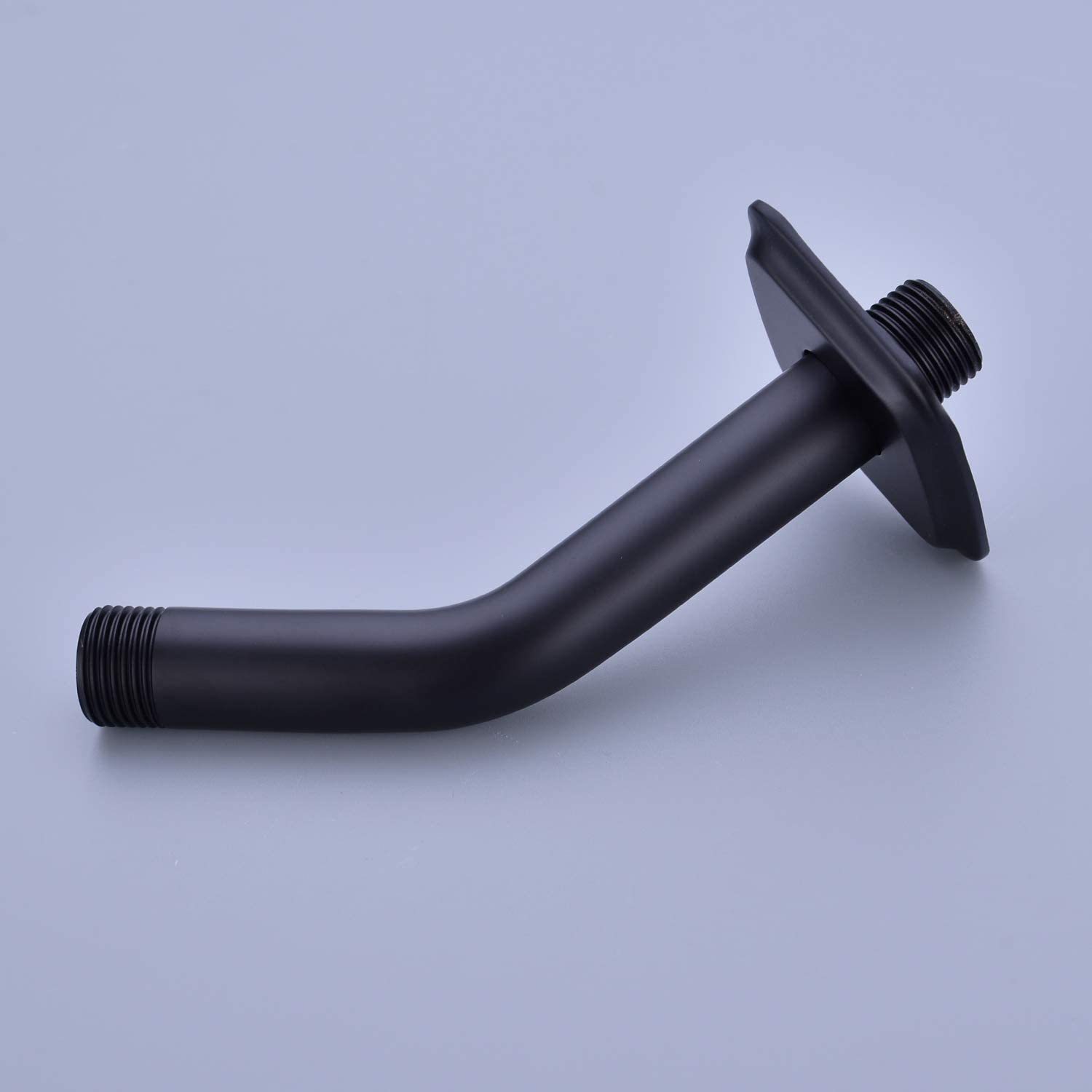 6-inches angle shower arm of high-quality stainless steel in matte black finished with escutcheon flange, all-in-one design to prevent leakage Fits all standard shower plumbing in the U.S. (1/2"-14 NPT male thread connects to wall, 1/2" IPS male thread connects to shower head) Corrosion resistant and rust-proof, 2.4" x 2.4" square flange with rubber ring will not scratch shower pipe arm body, position adjustable flange to fit for deeper water outlet Outside diameter 0.78" ( 20mm), 45-degree angled towards floor Designed to install quickly with no hassle. No plumbers or tools required