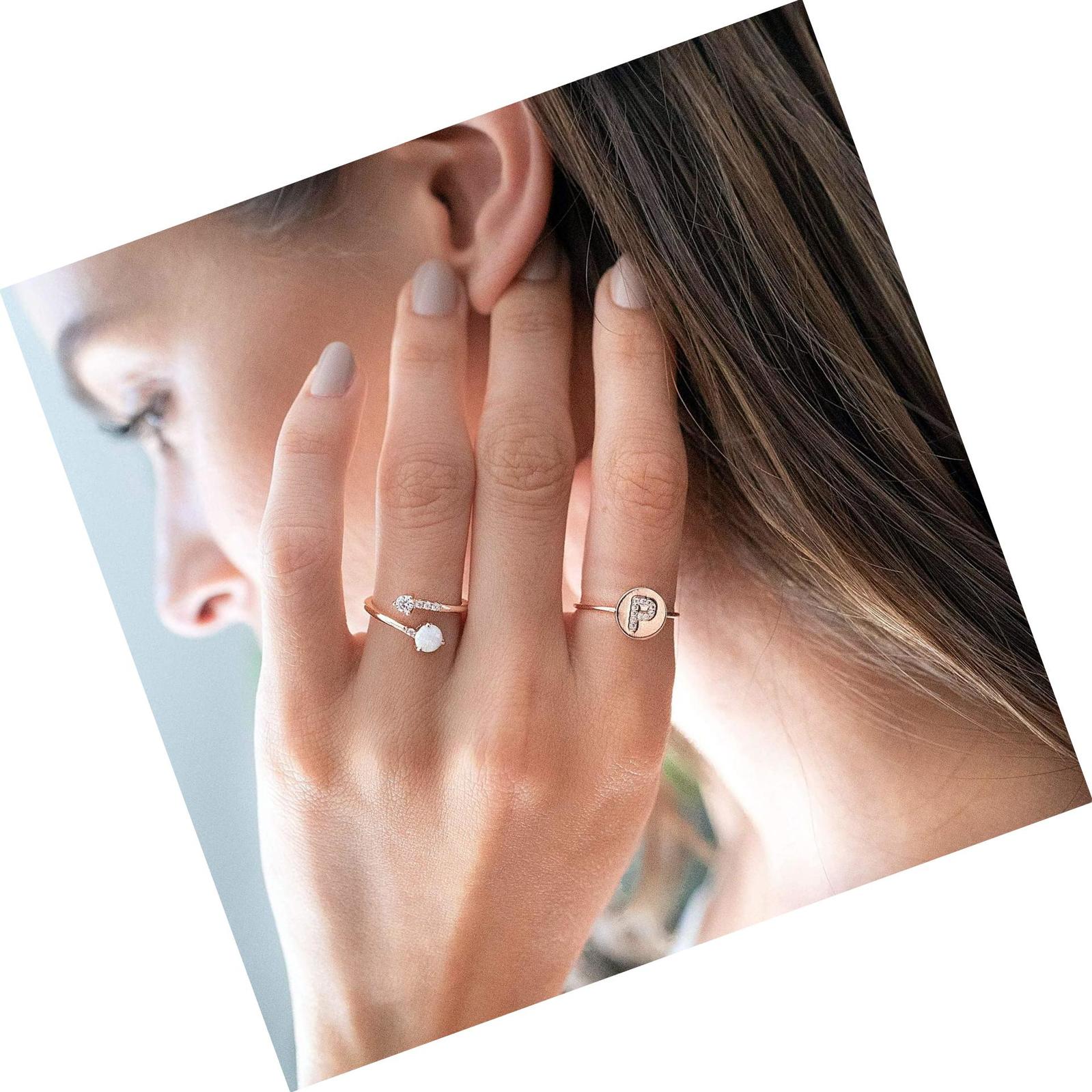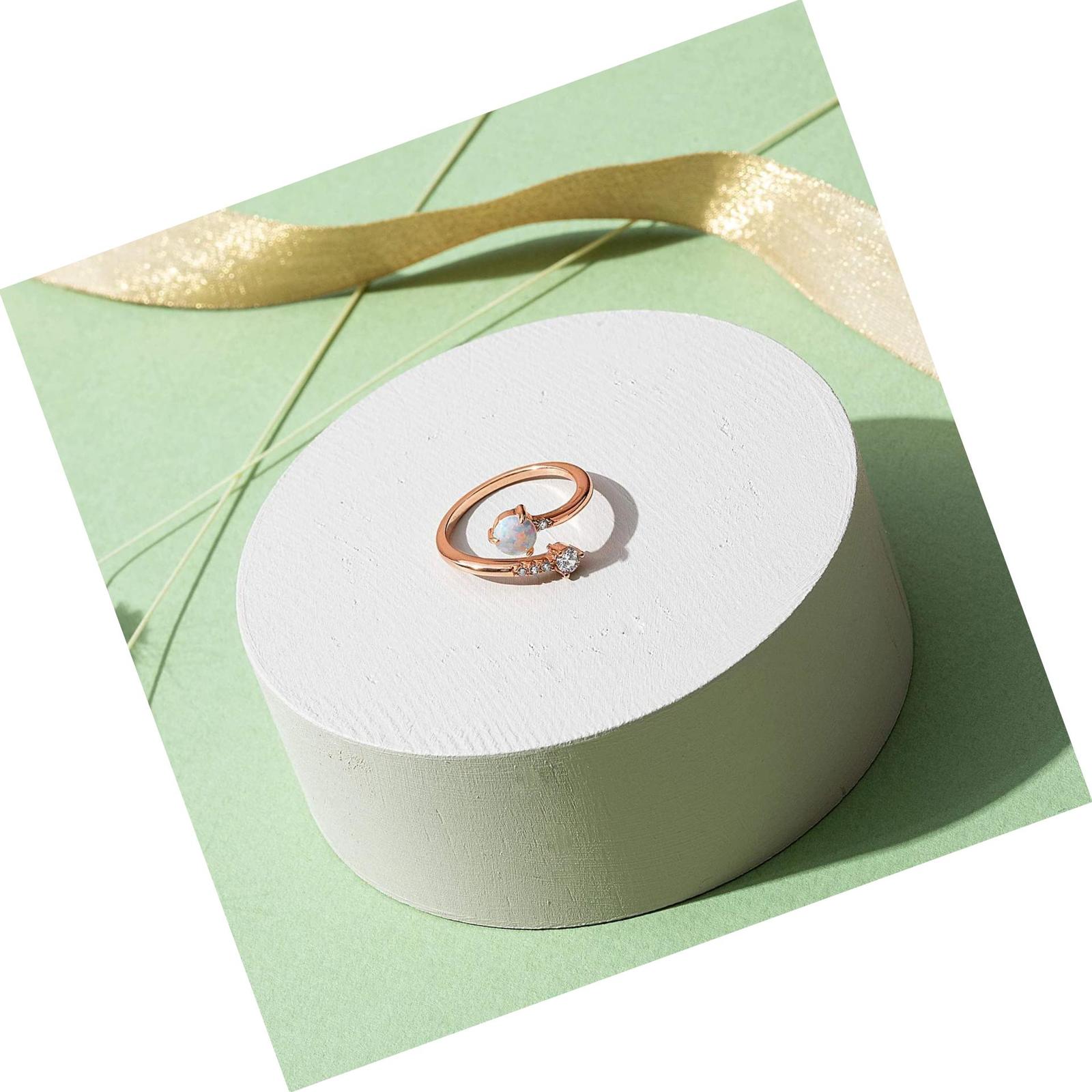 14K Gold Plated Adjustable Created Opal Rings | Rings