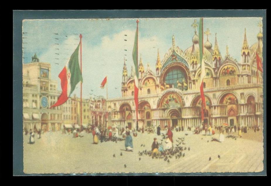 Vintage Travel Postcard Postal HIstory Italy to USA 1925 Plaza San Marco
