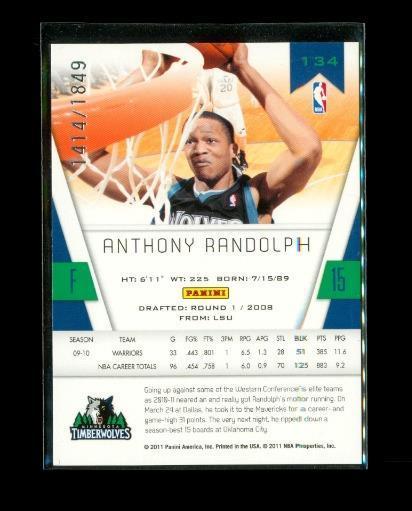 2010-11 PANINI CERT Basketball Card #134 ANTHONY RANDOLPH Timberwolves 1414/1849