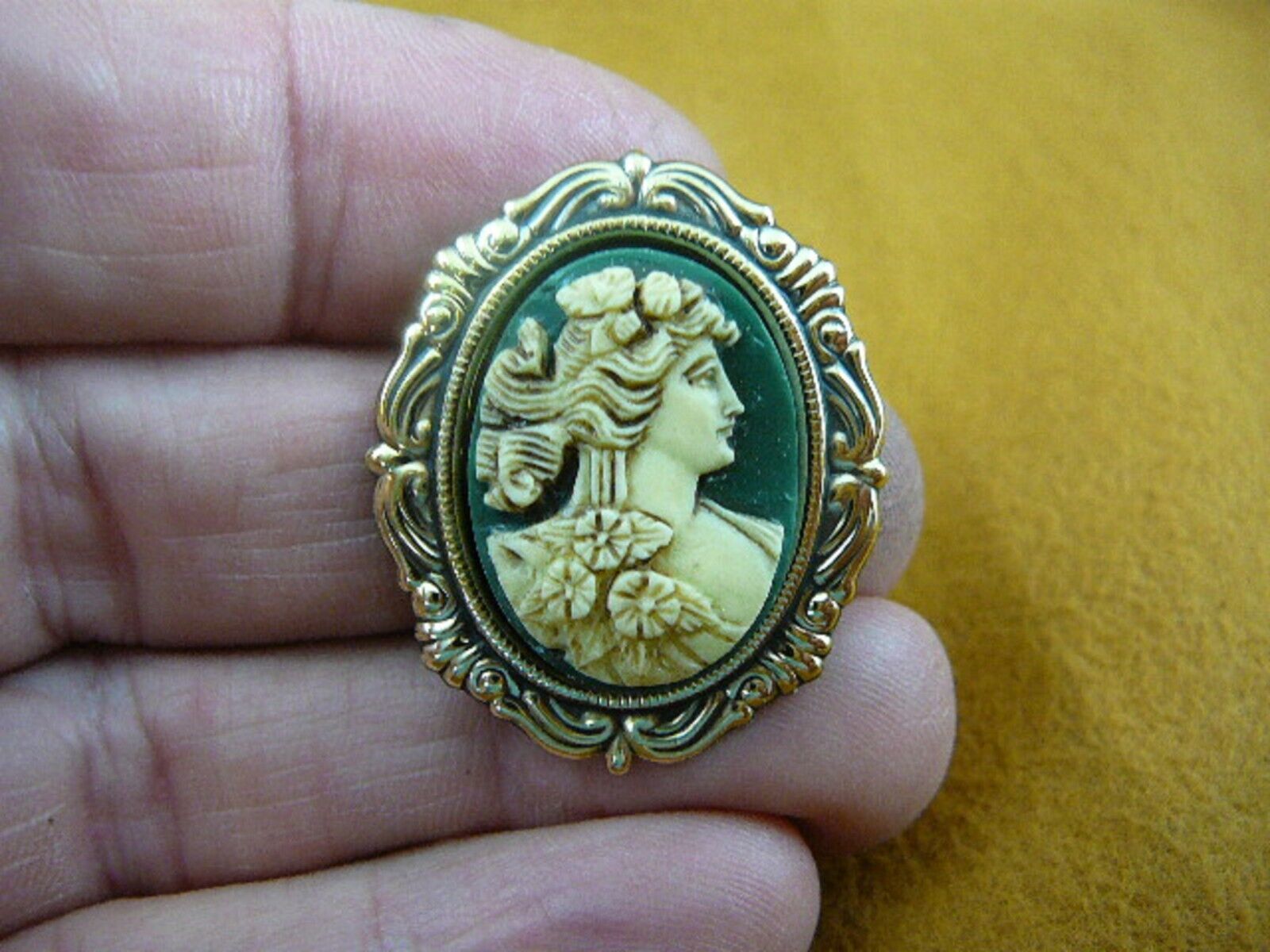 (CS48-1) Grecian Woman green off-white CAMEO jewelry Pin Brooch jewelry Pendant