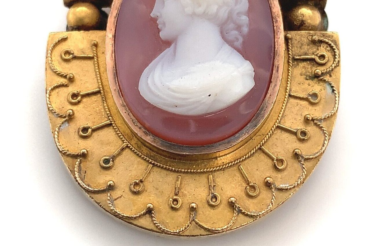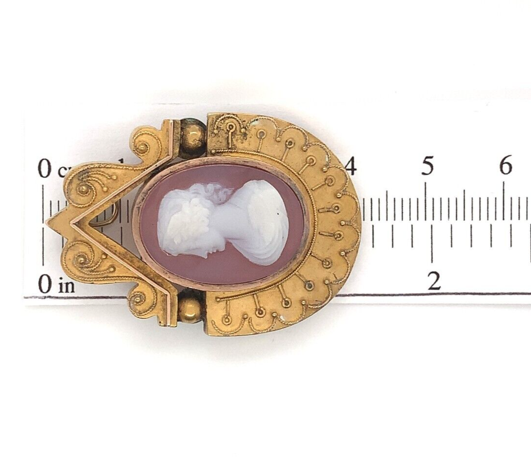 Authenticity Guarantee Victorian 14k Yellow Gold Genuine Natural Agate Cameo...