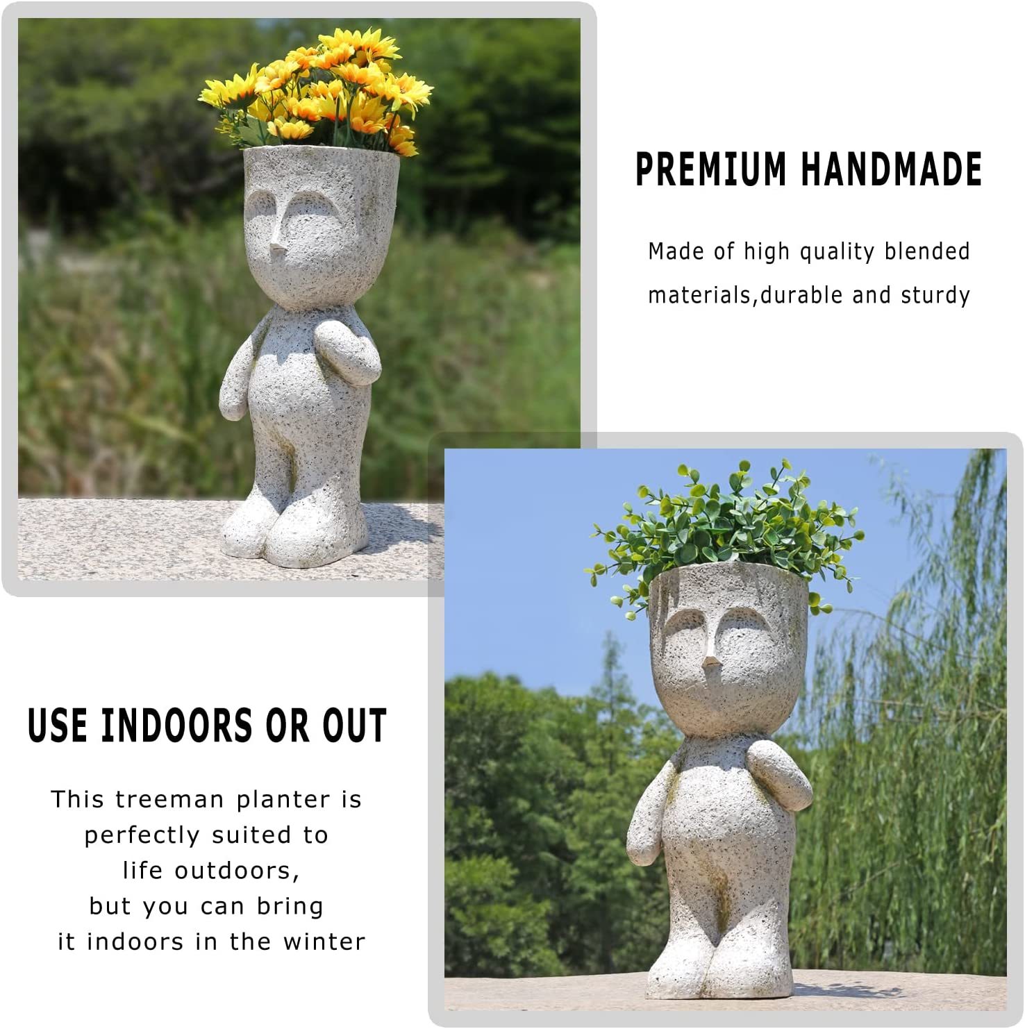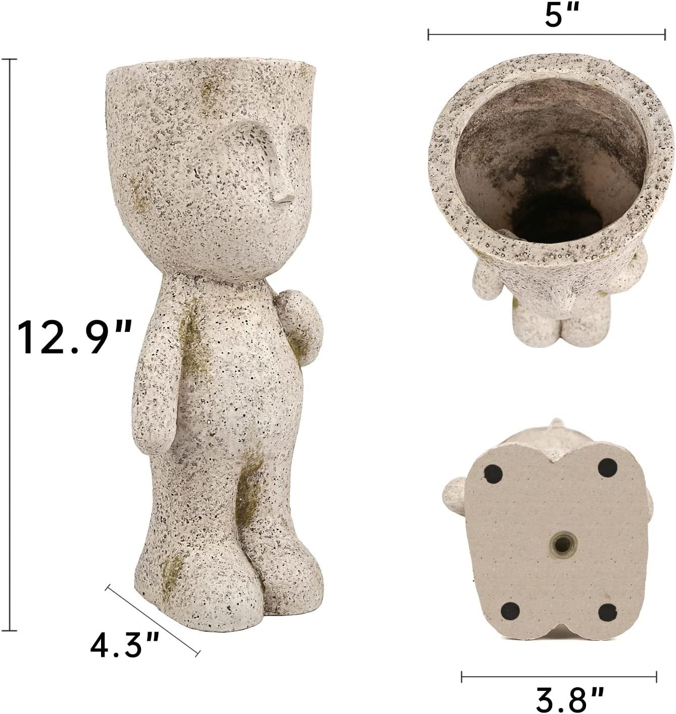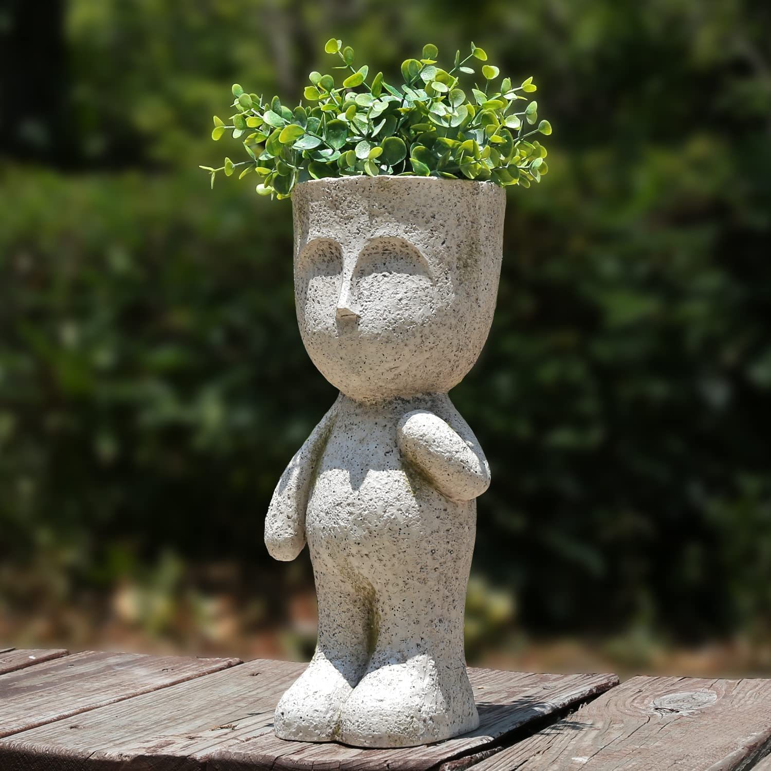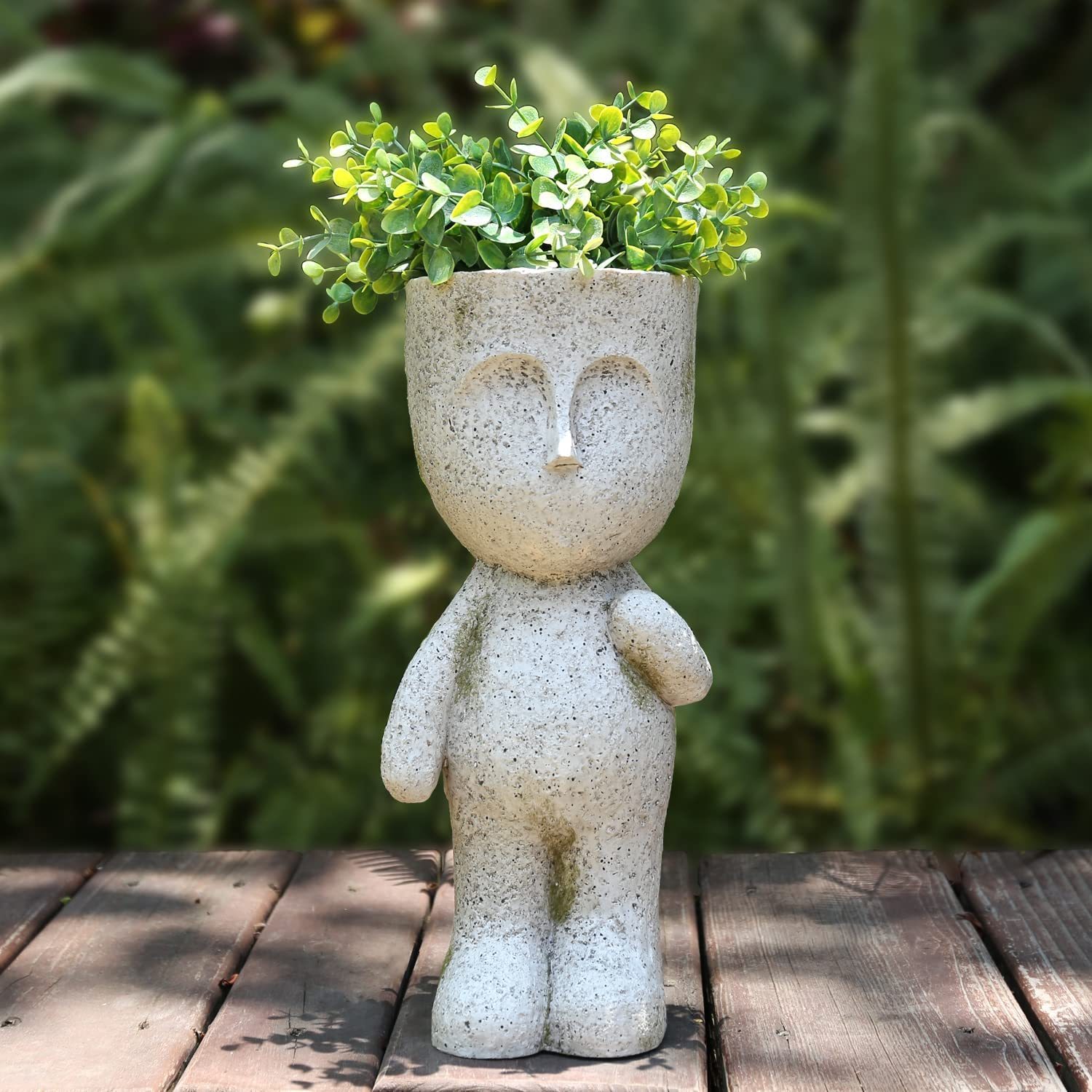 Premium Materials - This lovely face flower pot is made of quality and durable resin material, which ensures that it will last for a very long time. The special manufacturing process and weatherproof materials make our planters for outdoor plants pot can be used outdoor without being affected by the weather. Unique Design - Abstract facial outline and lovely shape make this face planters pots head come to life, while the body is decorated with flocking to give it a natural atmosphere. It is an excellent choice for decoration because to its handcrafted and distinctive style. Drainage Hole - Each head pot has a drainage hole at the bottom and a removable rubber plug to meet the needs of succulents or plants. This circular hole efficiently drains excess water from the pot, while keeping the surface of the pot free of stains and promoting the plant grow healthily. Funny Planter - This succulent pots has a distinctive design that gives everyone room to use their imagination. You can decorate it by adding any succulents or herbs, having fun by creating unique hairstyles for it, and that will brighten your life. Perfect Gift - The unique face planter can be placed anywhere indoor or outdoor, and it makes a perfect gift for a friend or family member who loves gardening and decorating on any holiday, birthday, wedding or housewarming, which will add charm to their home and garden.