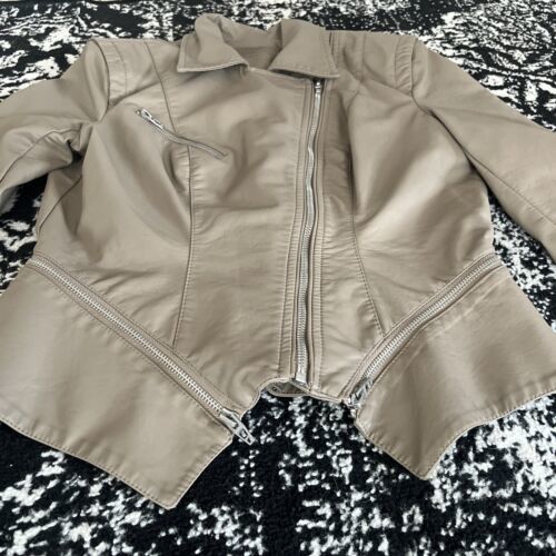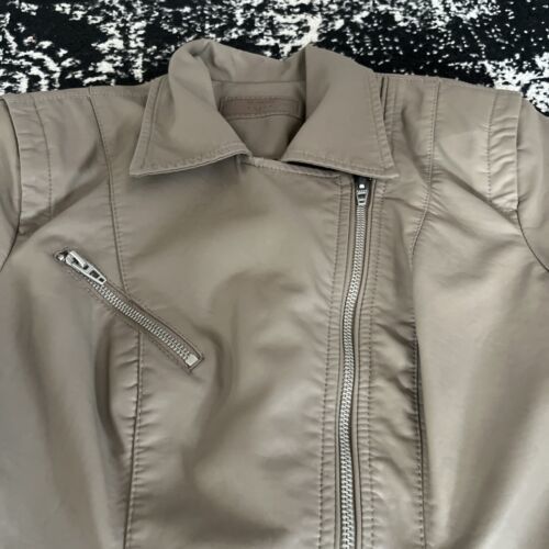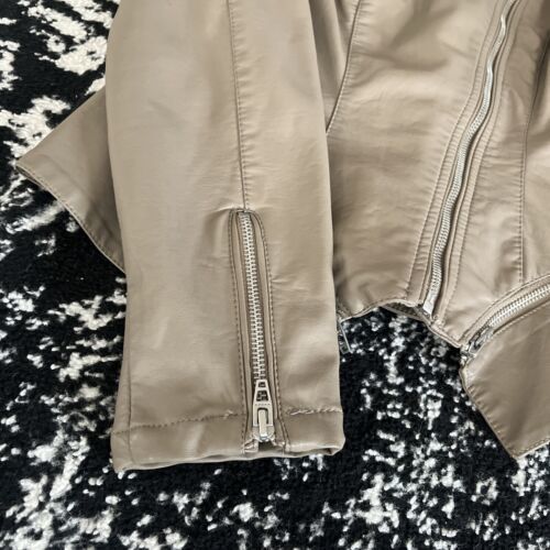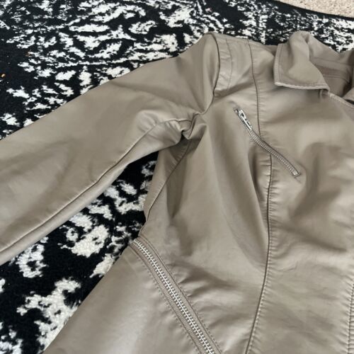 Blank NYC Suede Leather Moto Jacket Small Zipper Utility Spring Taupe.