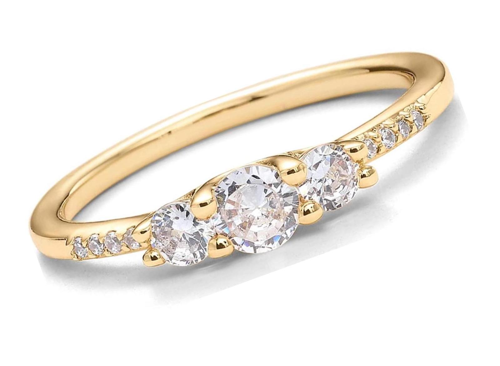 14K Gold Plated Cubic Zirconia Round 3-Stone Ring | |