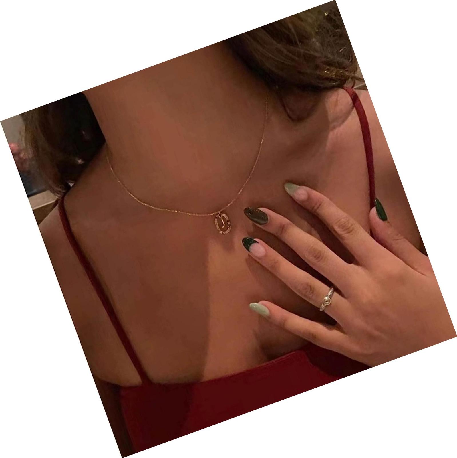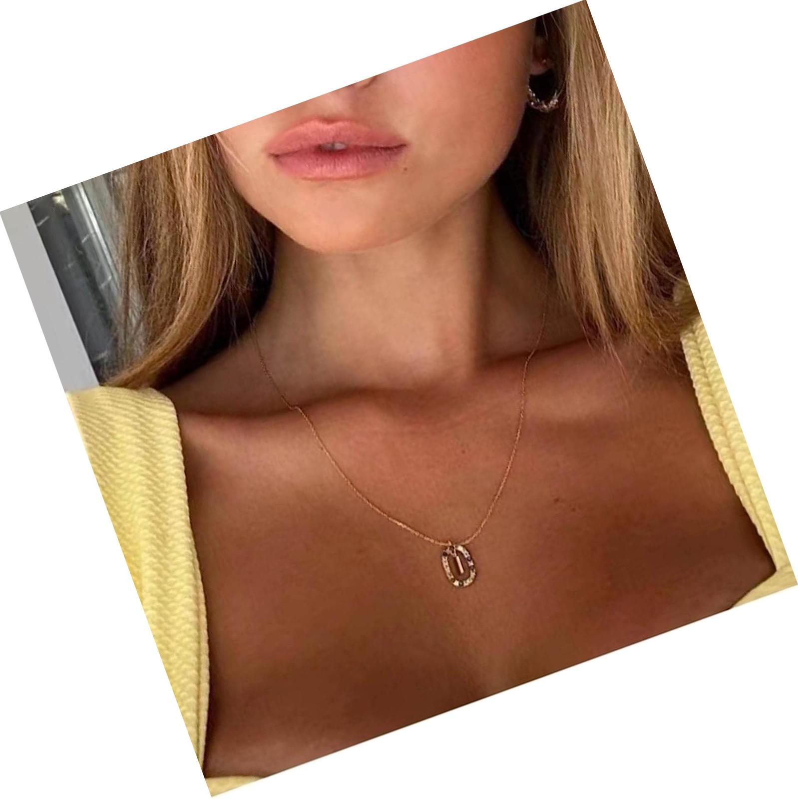 Layering Choker Alphabet Pendant Necklaces Cubic