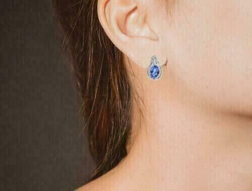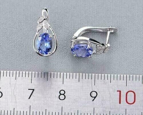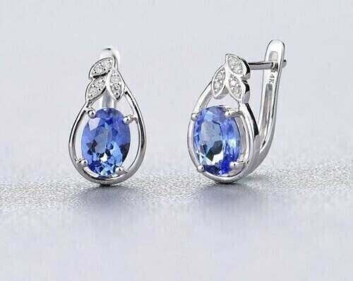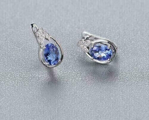 4Ct Oval Cut Simulated Blue Tanzanite Drop Dangle Earrings 14K White Gold Plated