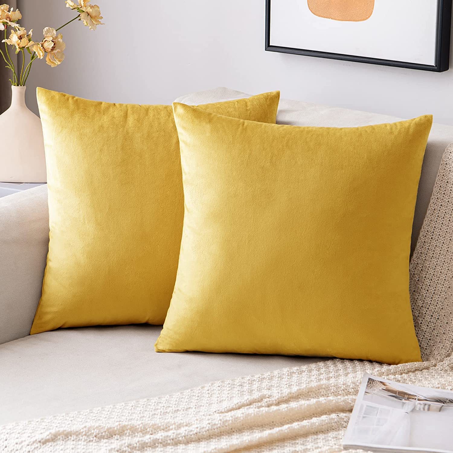 Lemon Yellow 18X18-Inch Pack Of 2 Decorative Sq\. Velvet Throw Pillowcase Soft