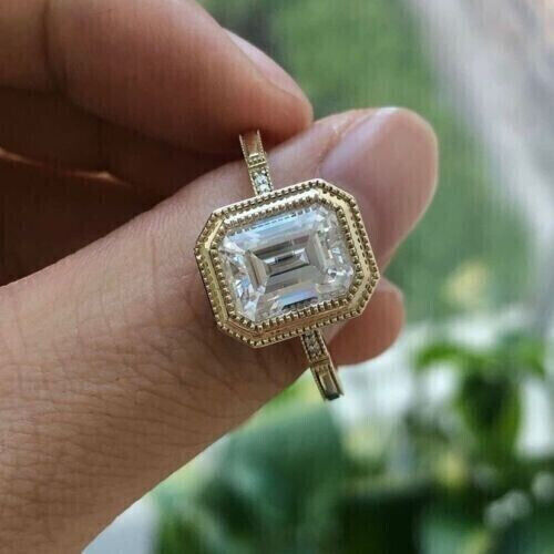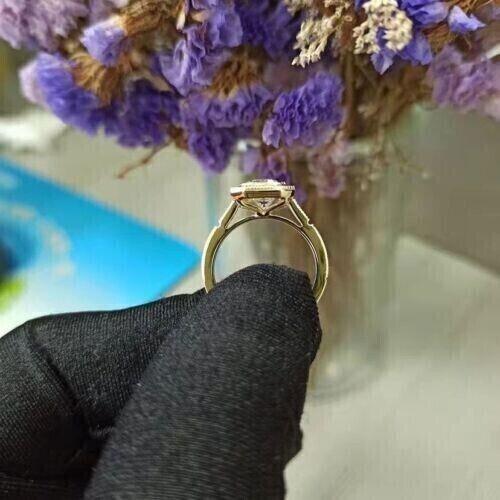 Beautiful 3.00Ct Emerald Moissanite Engagement Halo Ring 14k Yellow Gold Finish