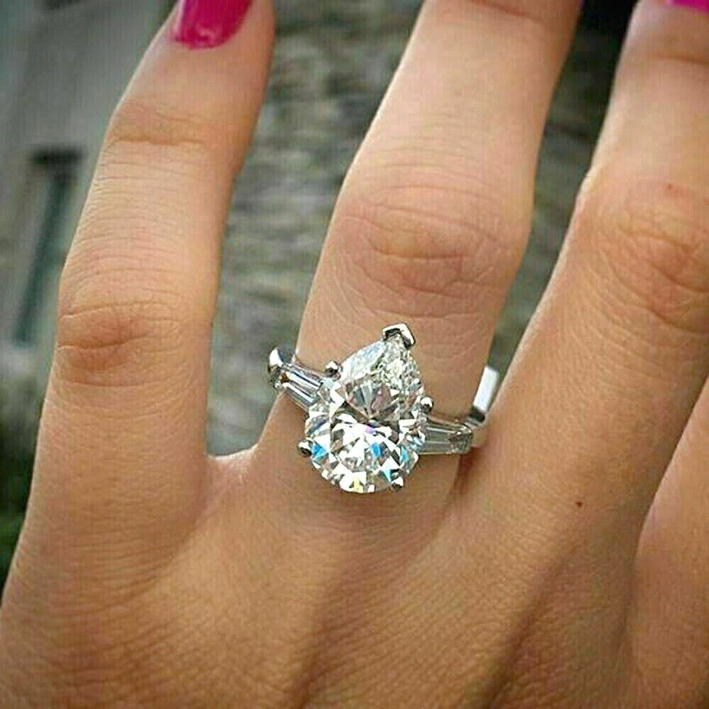 Beautiful 3.00Ct Pear Cut Moissanite Engagement Halo Ring 14k White Gold Finish