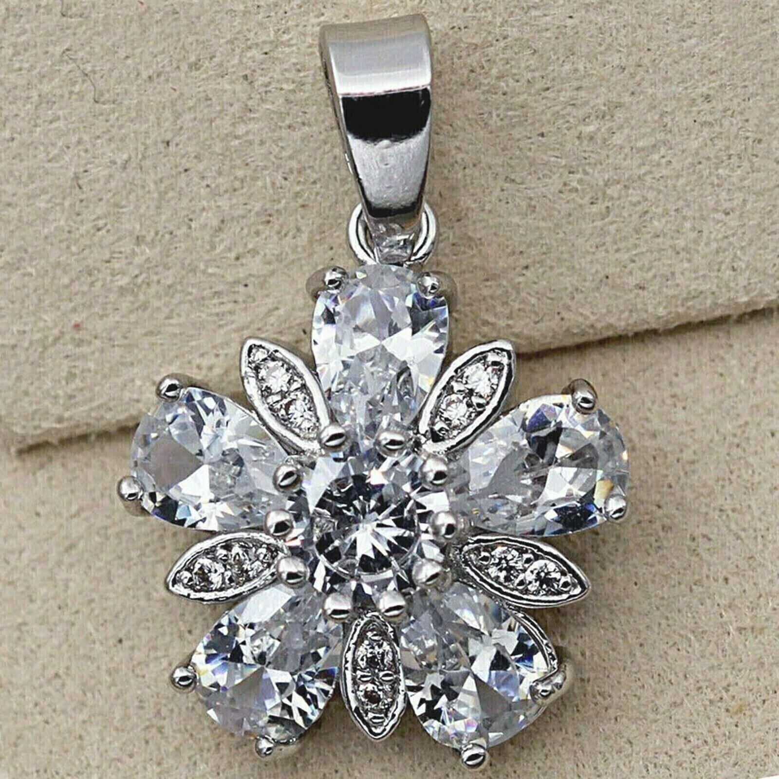 4Ct Round Cut Moissanite Flower Pendant 14K White Gold Plated Free Chain
