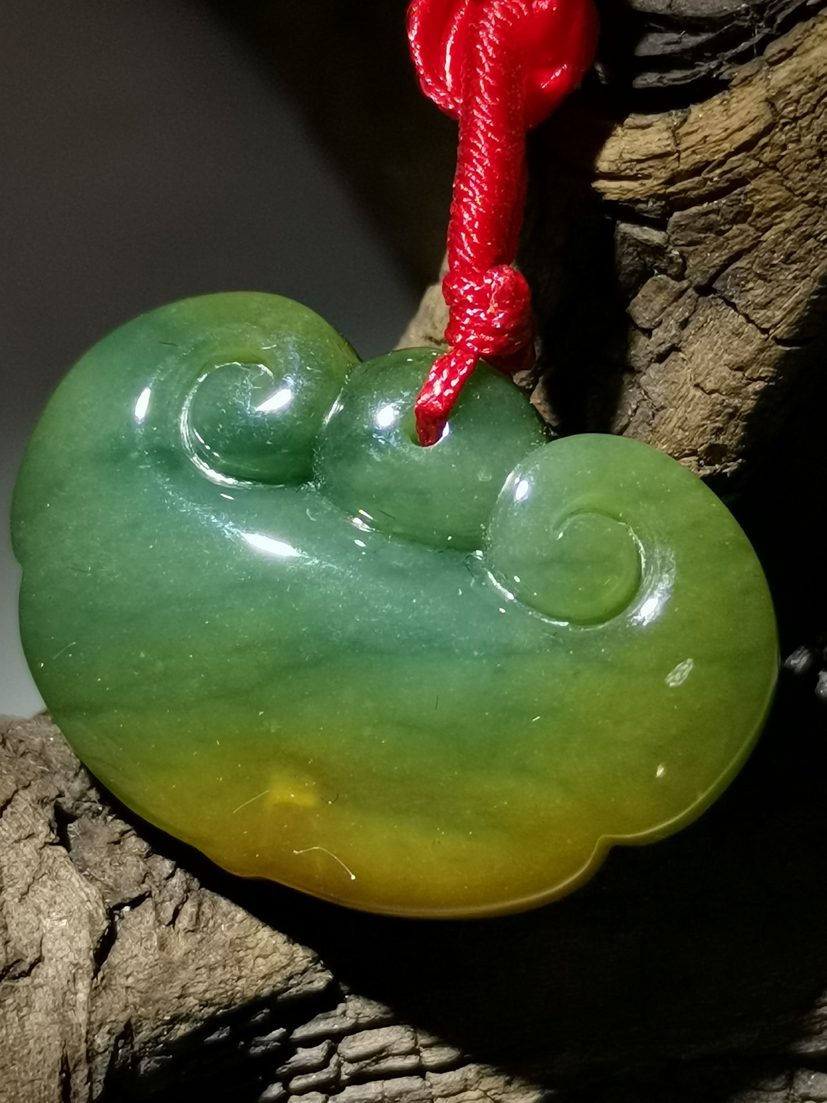 Fine Hand Carving Ice Green Yellow 100% Natural Burma Jadeite Jade Golden RU-YI Pendant for Prosperity Harmony