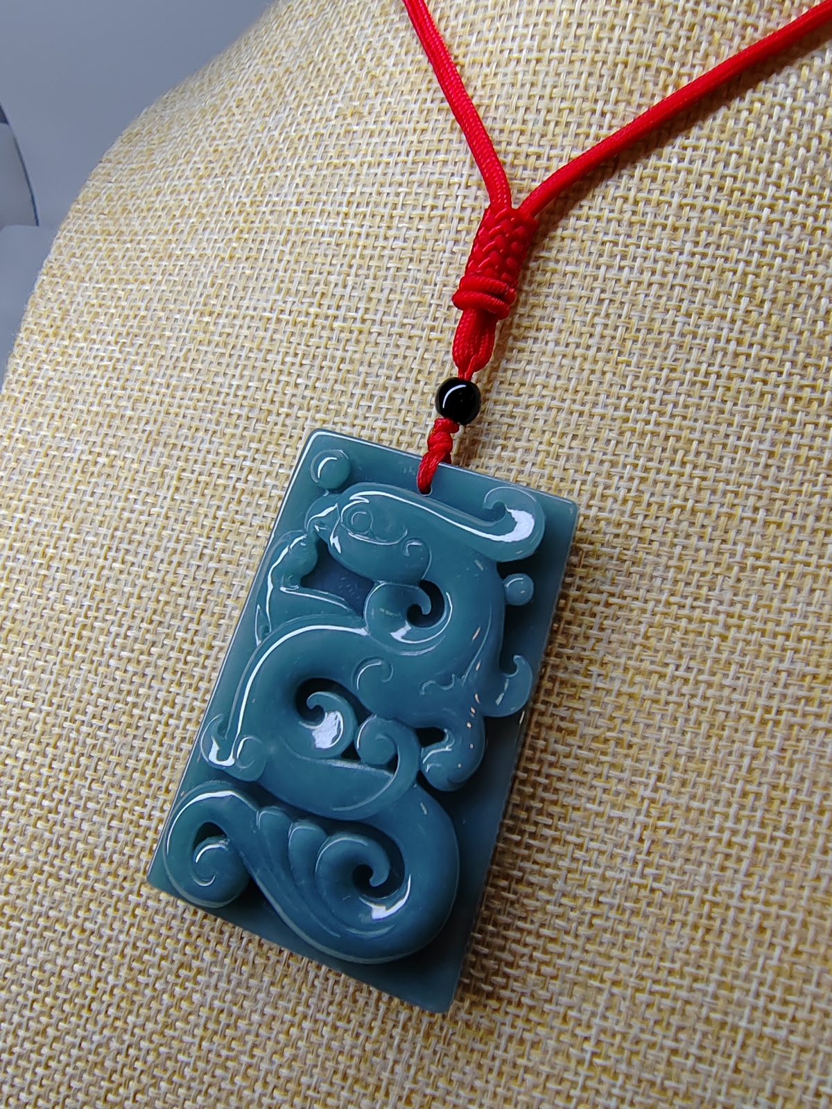 This is an exceptionally rare and finely hand-carved natural jadeite pendant. It belongs to the category of bluish green jadeite, which is considered one of the most coveted varieties in the market. Through meticulous craftsmanship, the delicate jadeite has been intricately carved into a representation of an ancient phoenix, symbolizing auspiciousness and renewal. The pendant measures approximately 61.60mm 40.30mm 10.40mm and weighs 65.35 grams, making it a valuable adornment with significant collectible value. In Chinese culture, the phoenix is emblematic of good fortune and prosperity, often associated with divine qualities and the promise of a bright future. Thus, this jadeite pendant serves not only as an artistic masterpiece but also carries profound symbolic meaning. Possessing such a pendant allows one to appreciate its exquisite craftsmanship and beauty while also receiving blessings of auspiciousness and happiness. Jadeite, renowned for its rarity and preciousness, has long been cherished by collectors. This particular pendant, with its unique design and precious material, is undoubtedly an invaluable treasure worthy of preservation and inheritance.