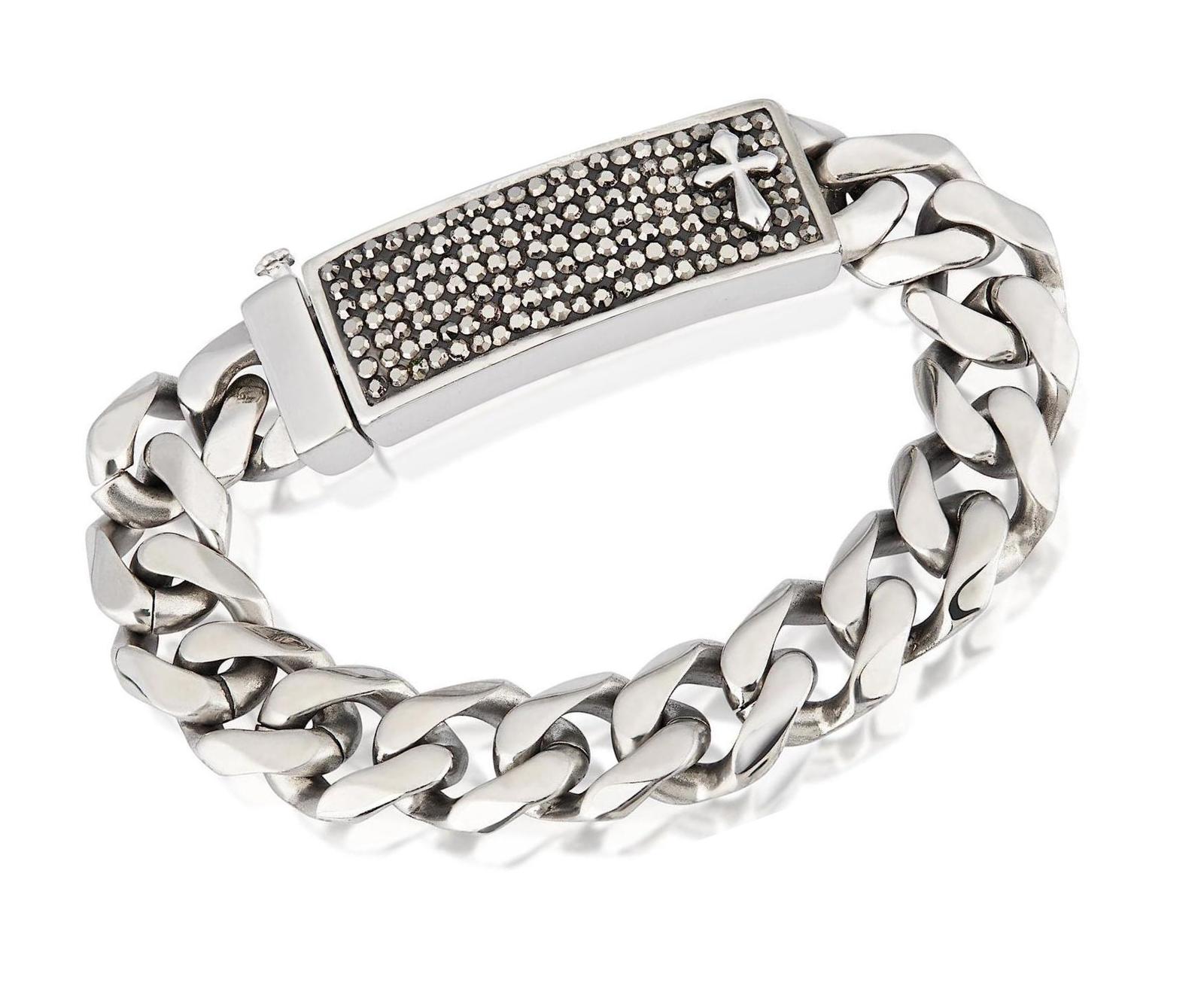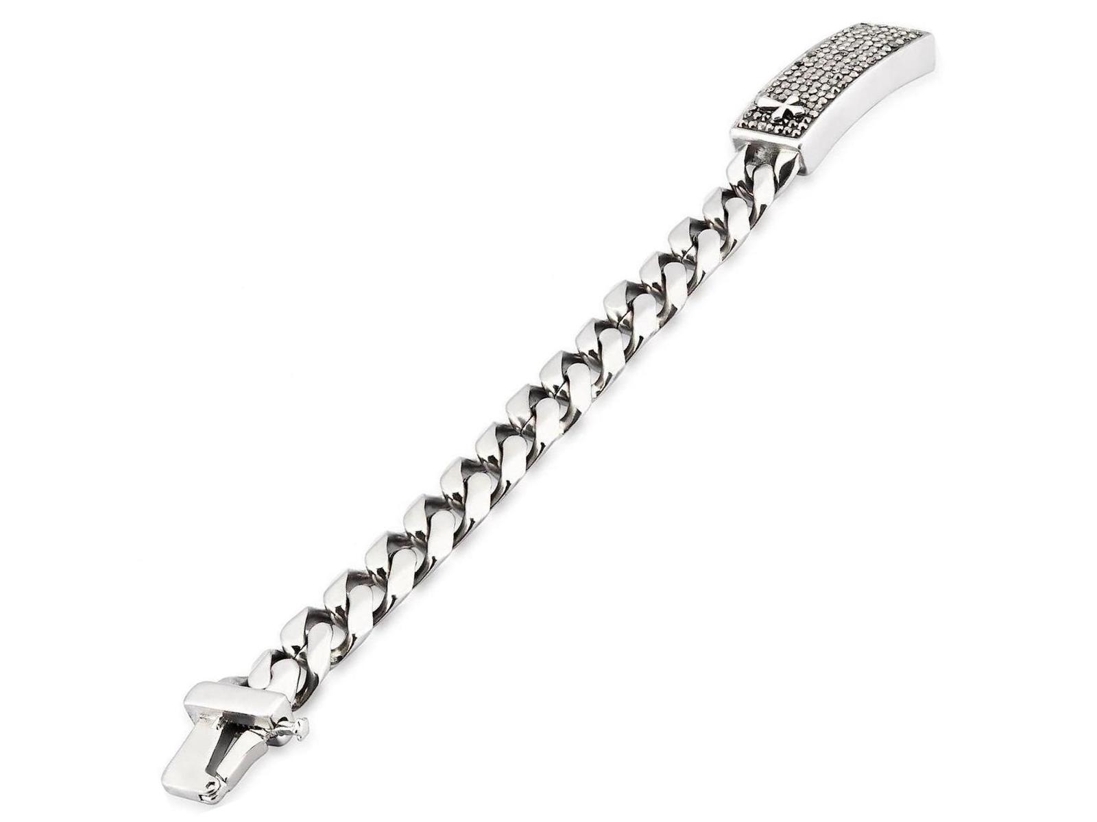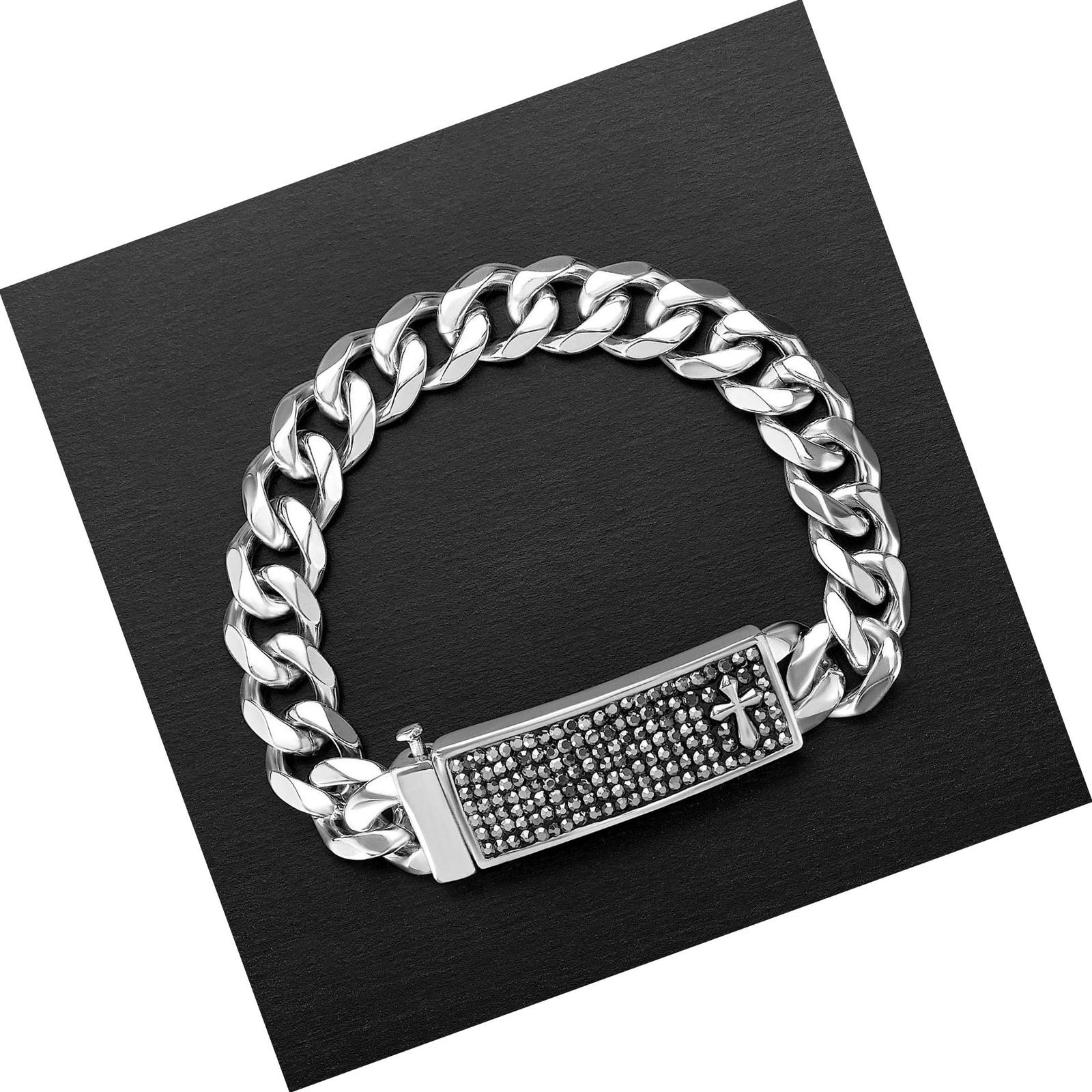 Jewelry Mens Stainless Steel Crystal Cross ID Plate