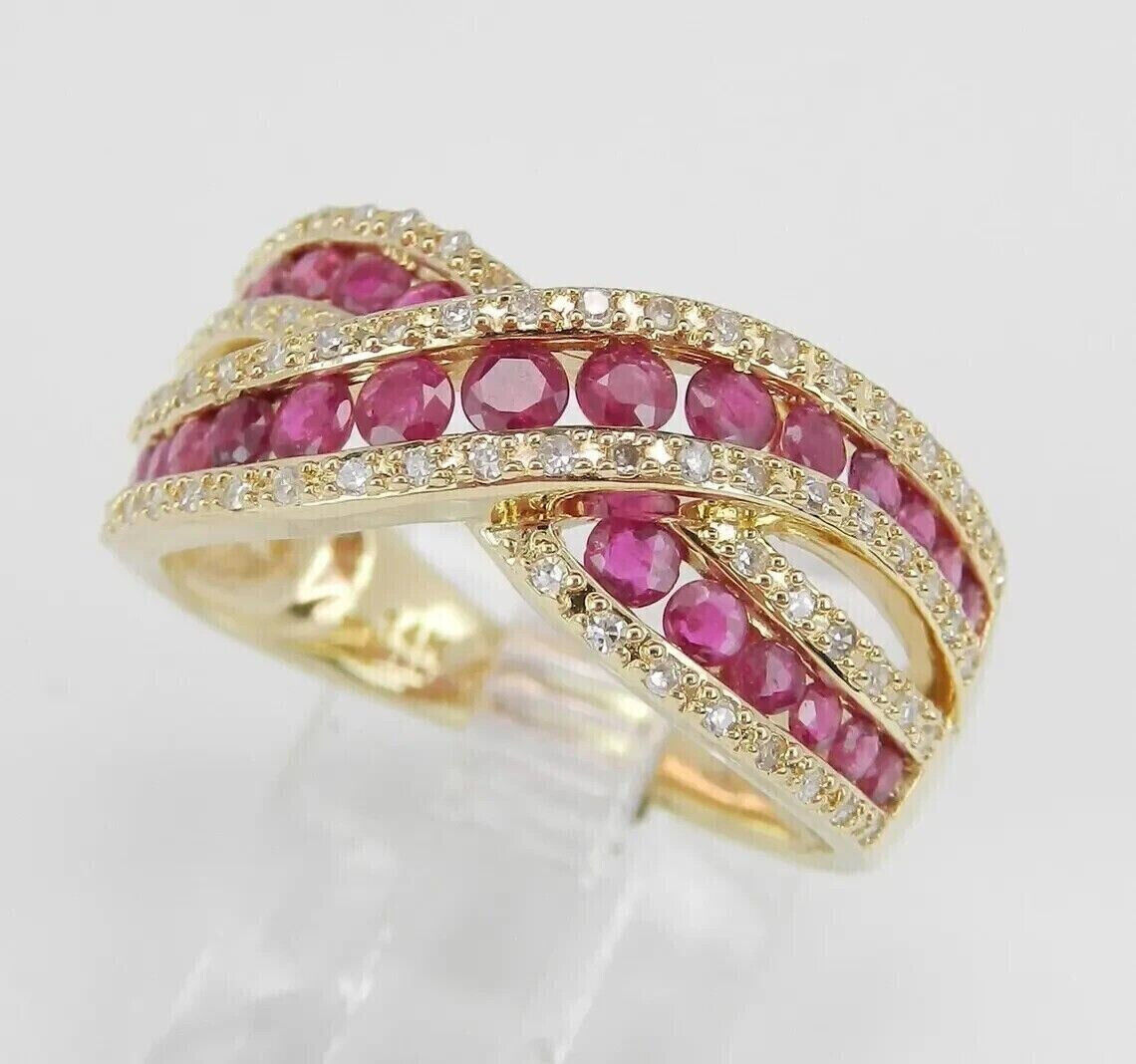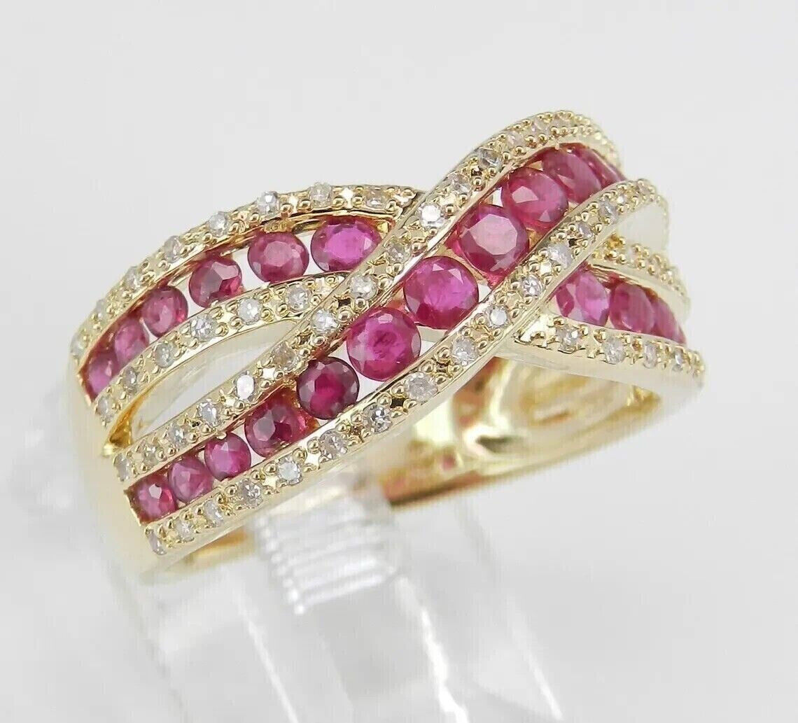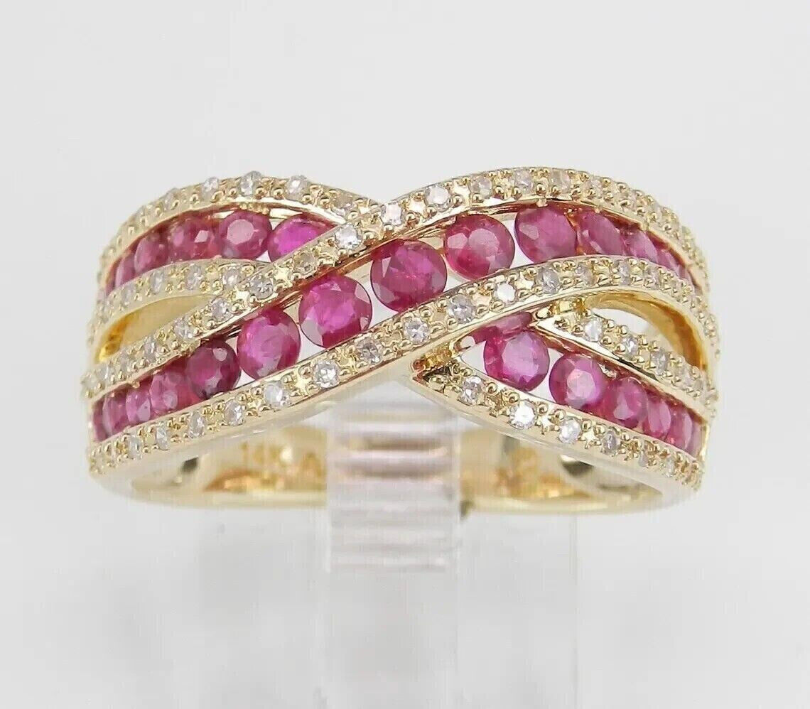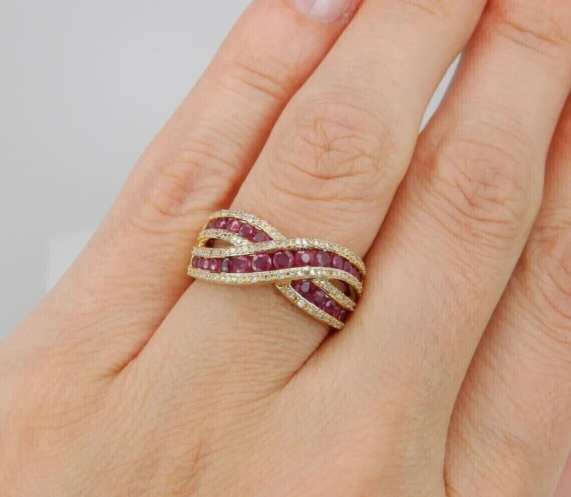 2.20Ct Round Simulated Red Ruby Bypass Anniversary Ring 14K Yellow Gold Plated