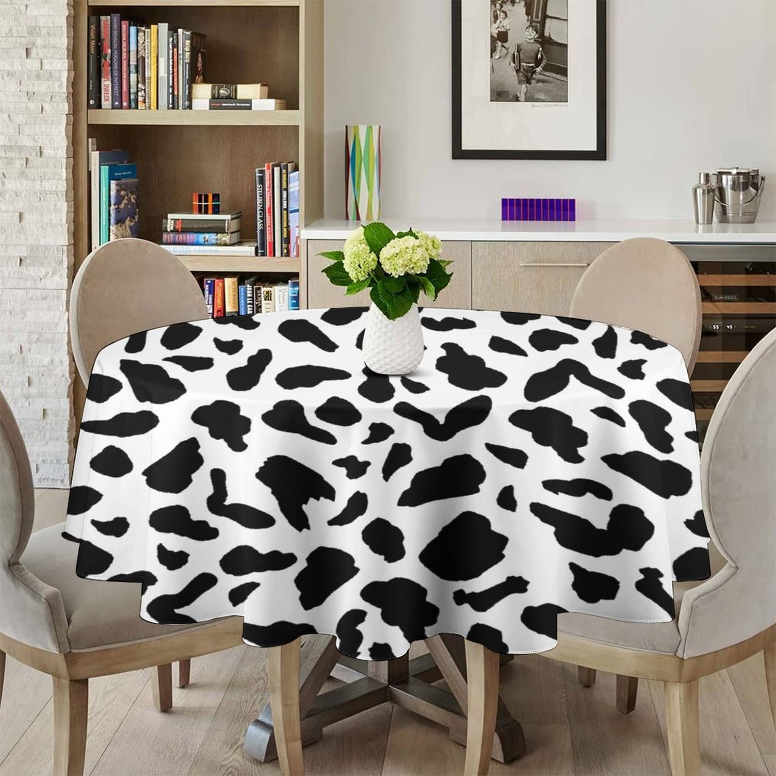 Tablecloths for Round Tables Black and White Cow Skin Style Table Cloths for Parties Dining Room Table Decorations