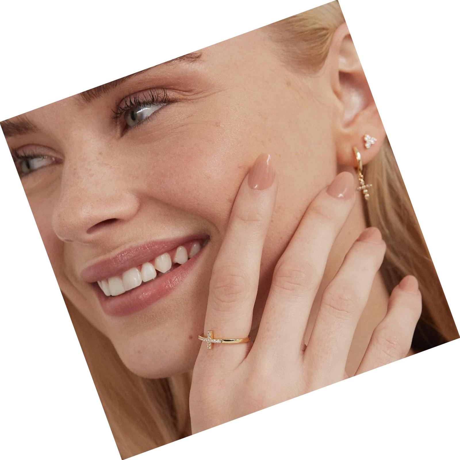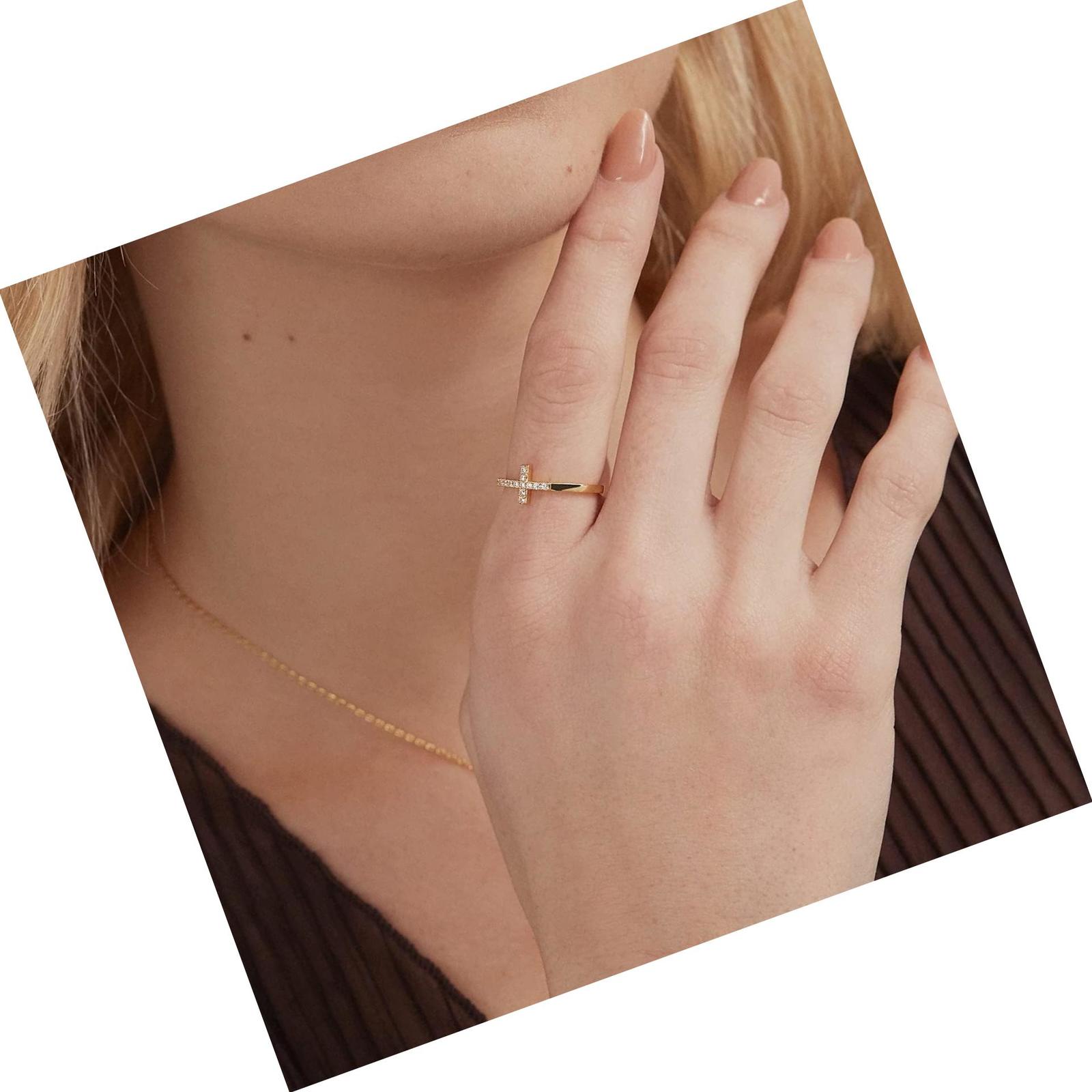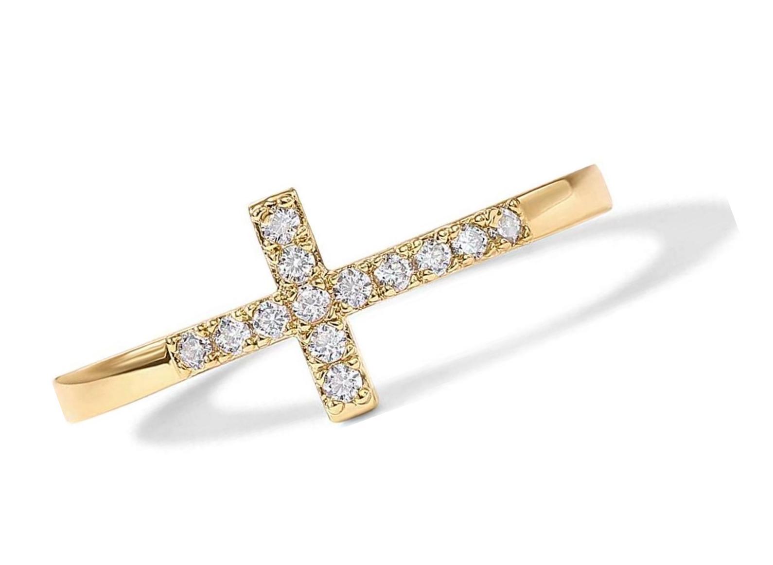 14K Gold Plated CZ Cross Ring | Eternity Ring for Her