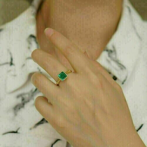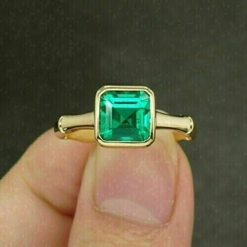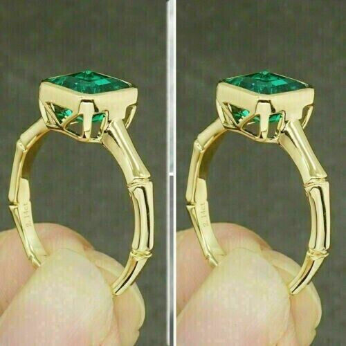 Women 3Ct Asscher Cut Simulated Emerald Engagement Ring 14k Yellow Gold Plated