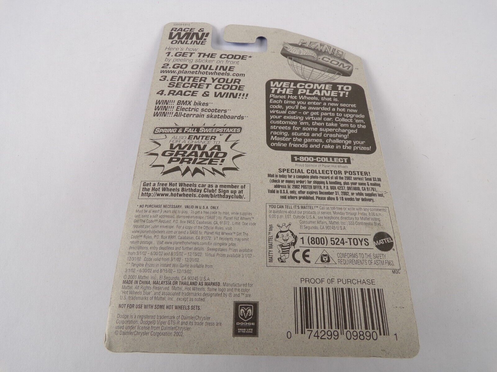 Featuring : Van / Sports Car /Hot Wheels Mattel Wheel Race amp; Win 174 Dodge Viper GTS-R #H13