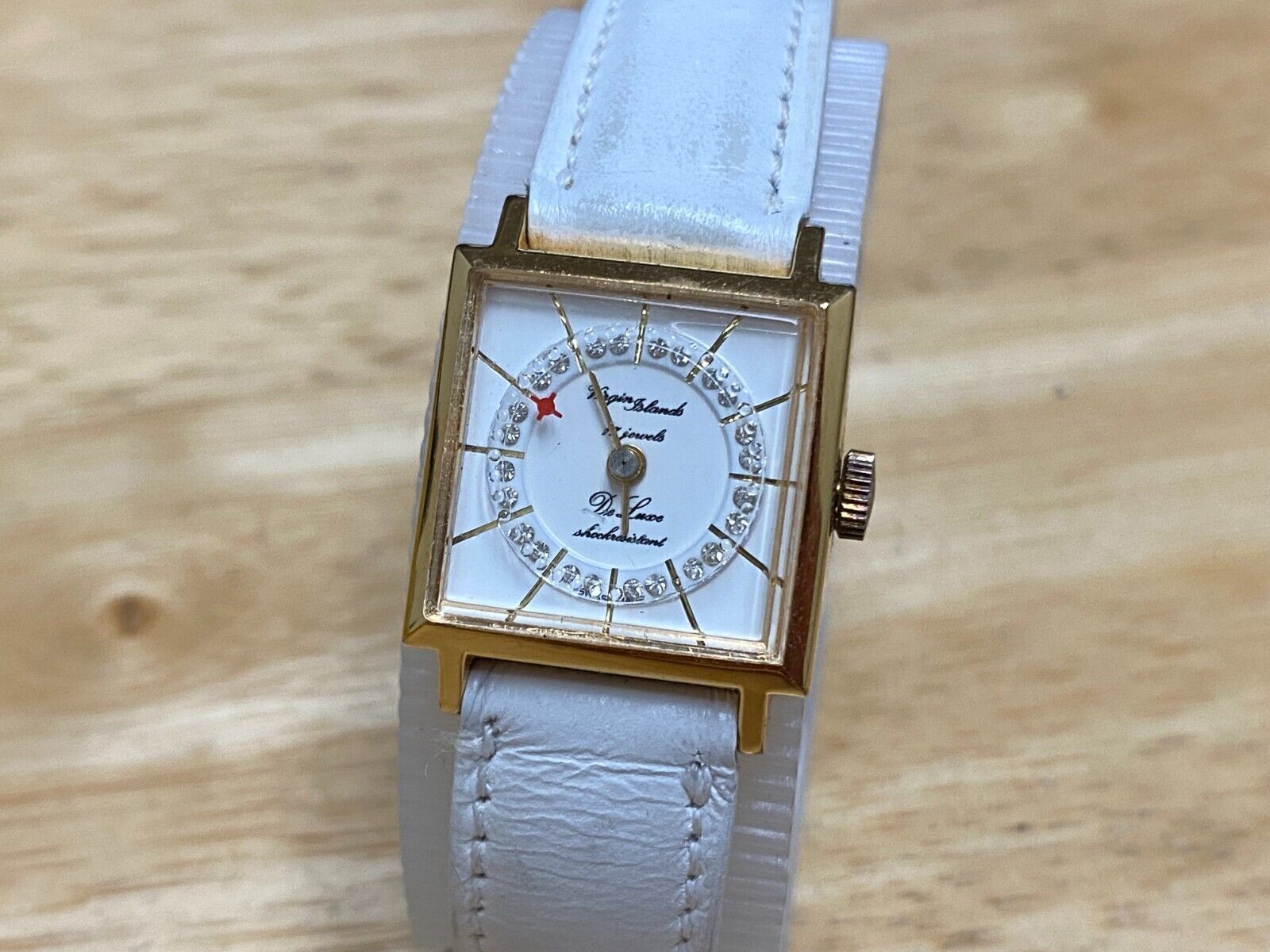 VTG Virgin Island Lady Mystery Dial Gold Tone Leather Hand-Wind Mechanical Watch