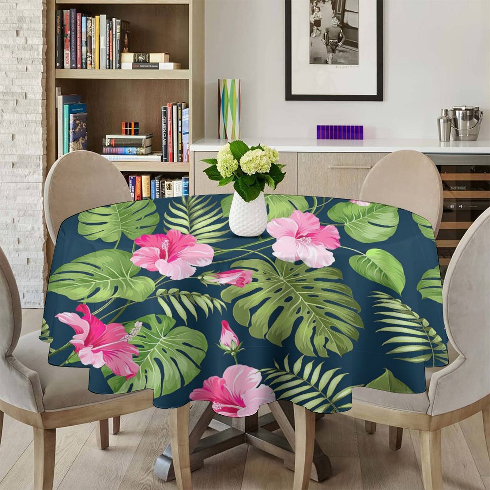Tablecloths for Round Tables Tropical Flower Floral Jungle Palm Leaf Hibiscus Table Cloths for Parties Dining Room Table Decorations