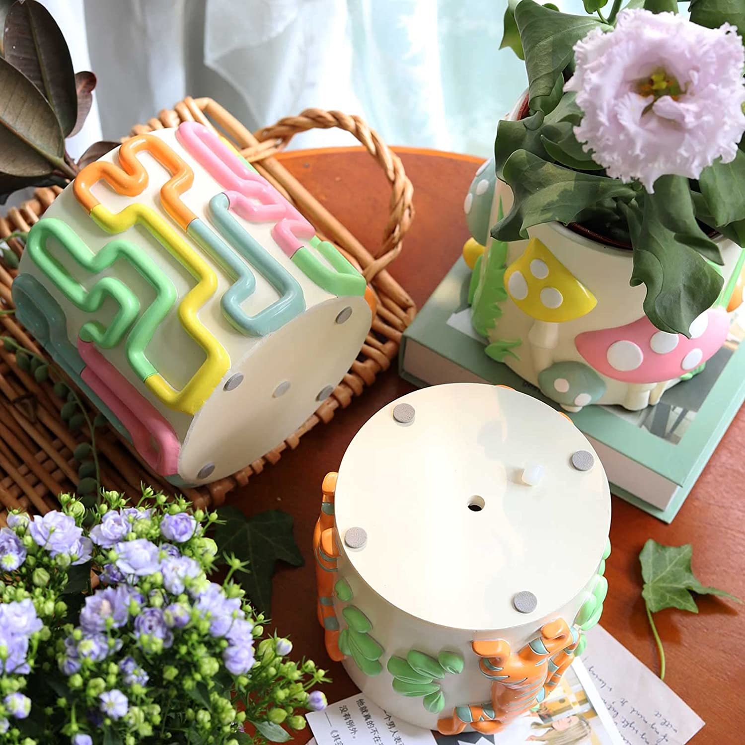 ?Blooming Flowers?You will be obsessed with a 360-degree colorful painting depicting of the cute flowers blooming on the flower plant pots. Once you put your inventive plants of choice in, the eclectic rainbow planter will add whimsy to your plant display. ?Versatile use?There is amble room for any small plants to be planted in, such as string of pearls, succulent, cactus, fern, air plant, or artificial greens. Also good at holding other things, such as sticks, pens, paint brushes, or kitchen utensils. Plants are not included. ?Sturdy Yet Lightweight?The decorative succulent gardening pot is sturdy for being resin cast and durable with a water resistant finish. Come with a larger drainage hole and removable rubber plug, also planters have pads underneath to against scratching furniture. Size: 4.92?? Dia. x 4.92?? H ?Breathtaking Gifts?A gorgeous vintage retro addition to your outdoor garden or indoor desk, shelf, windowsill, which can blend into your boho modern home perfectly as unique decor. Perfect as funky quirky plant lady gifts for birthday, wedding, housewarming, Valentine's Day, Mother?s Day, Christmas Day. ?A Lovely Brand?GUGUGO is a design-oriented brand. We strive to design your dream house with the balance between aesthetic and practical. Life needs some surprises. Please give us a chance to join you in making it more fantastic.