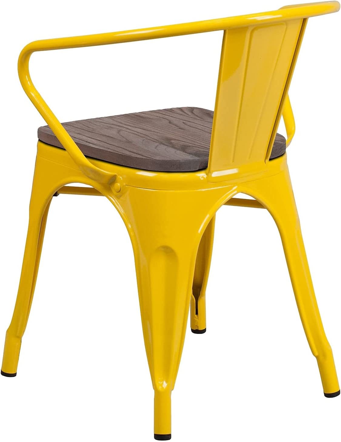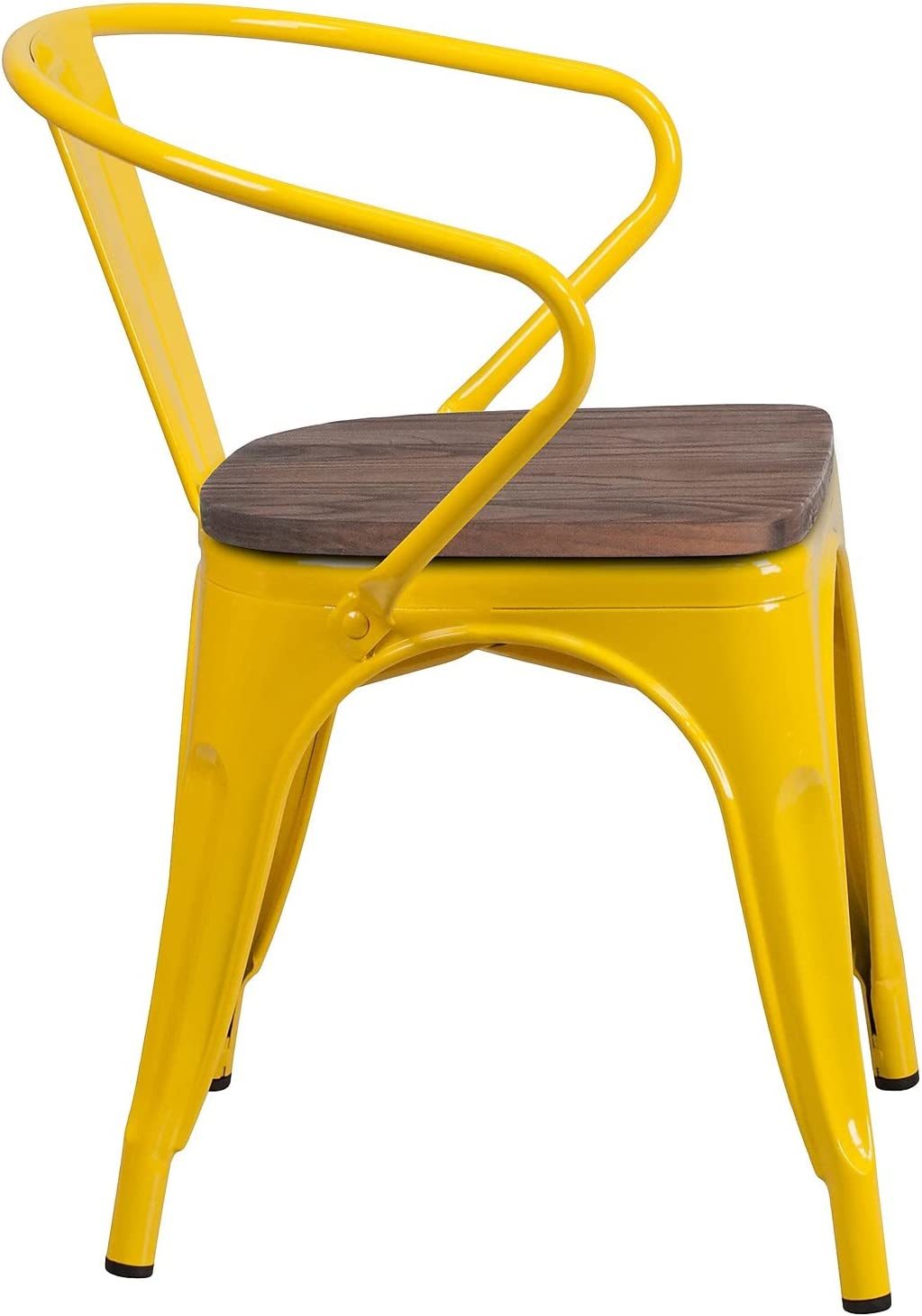 Flash Furniture'S Yellow Metal Chair Has A Wood Seat And Arms.