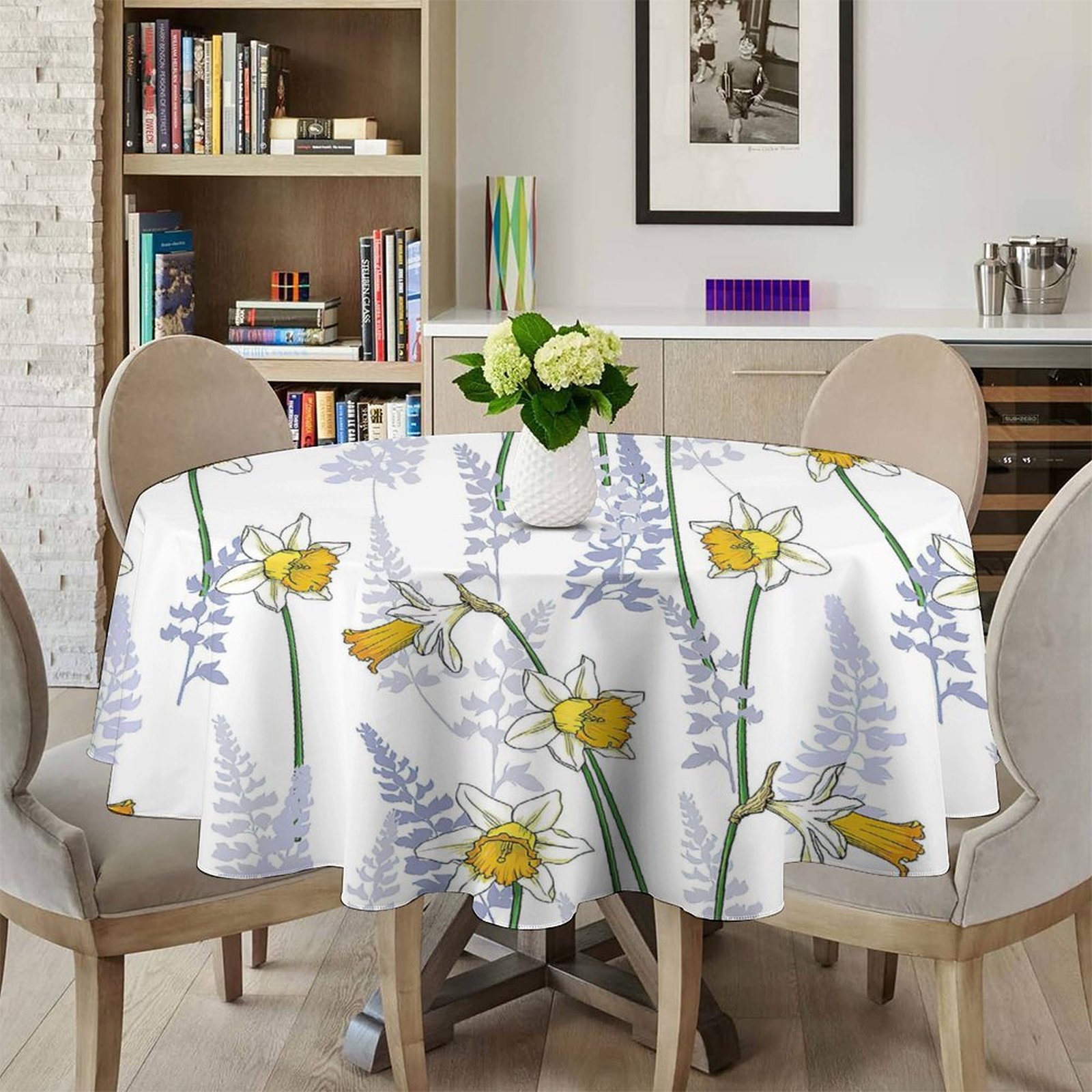 Tablecloths for Round Tables Watercolor Floral Colorful Yellow White Flowers Table Cloths for Parties Dining Room Table Decorations