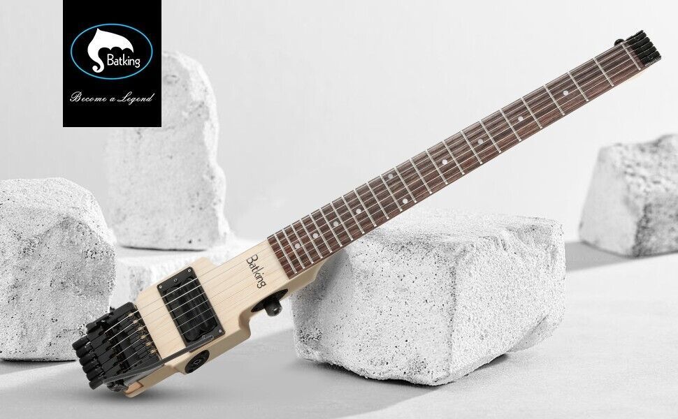 Batking Brand Electric Travel Headless Guitar With Tremolo Canadian Maple Body With Padded Bag