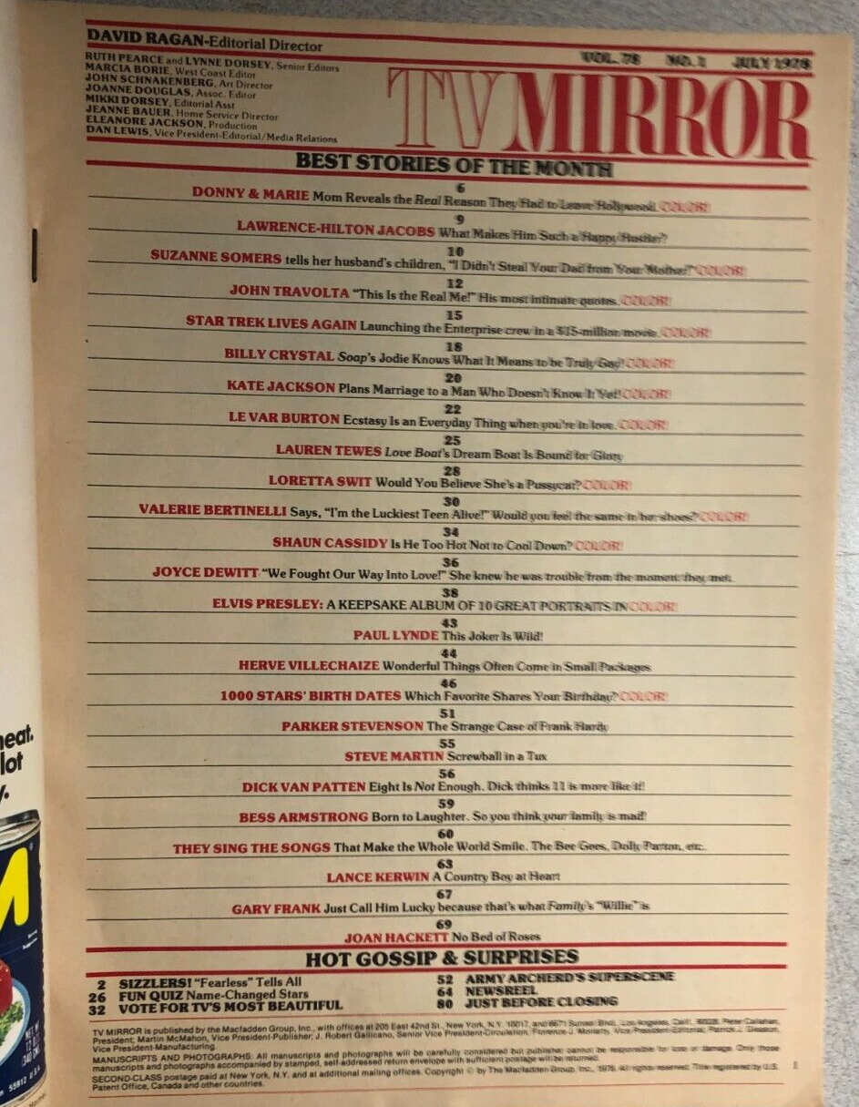 TV MIRROR Magazine July 1978 Elvis, Donny & Marie, Travolta, Somers, Star Trek