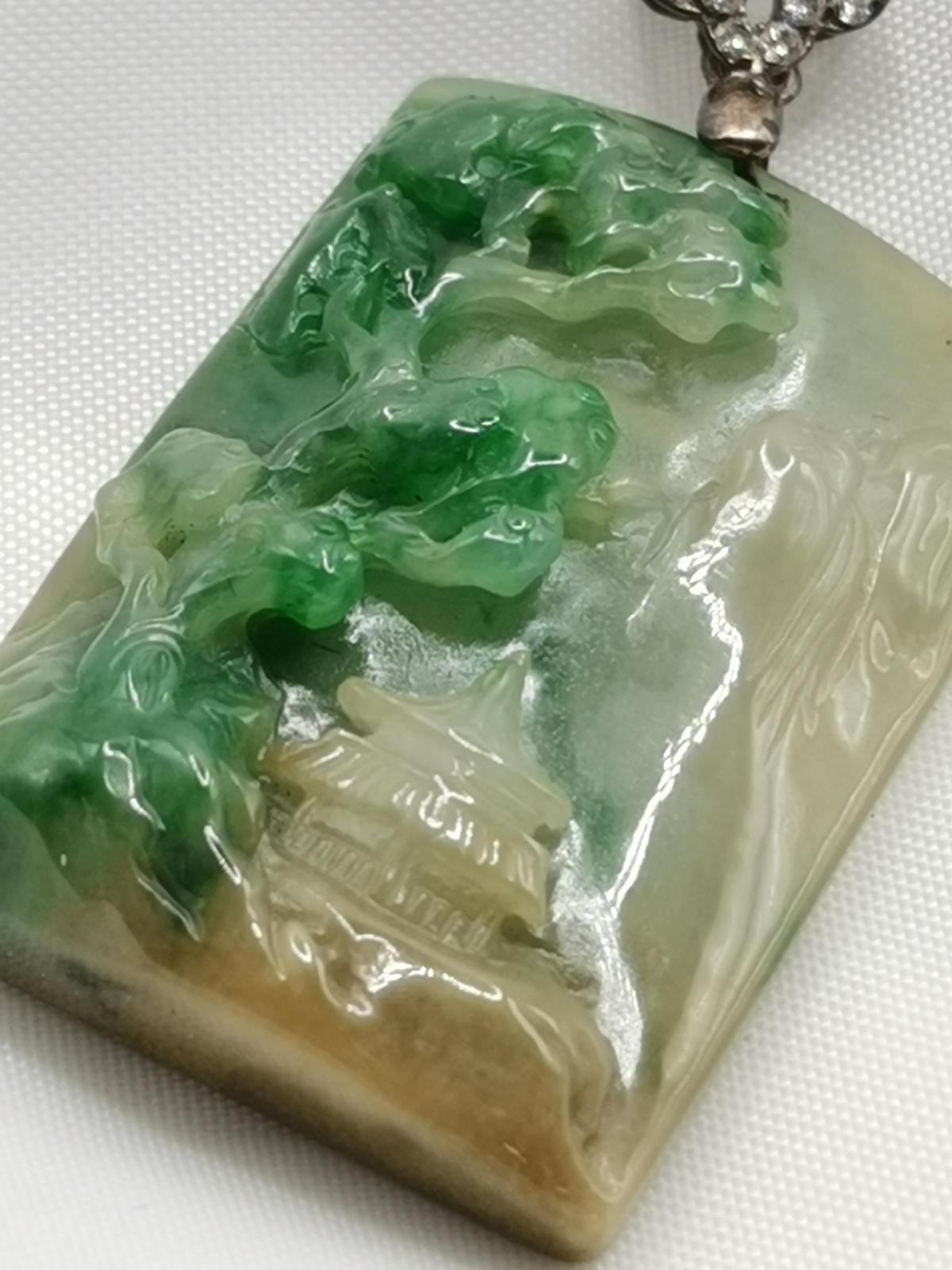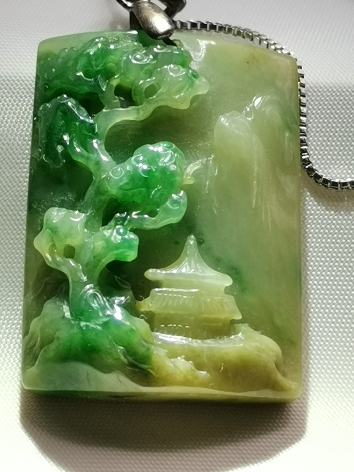 Jadeite Landscape Carving - The depiction of nature has a long history in the field of painting. Mountain and waters have always been the favorite of scholars whether it is poetry, poems, calligraphy and painting, the various themes are derived from mountains and rivers. Landscape generally emphasize that natural represents the source in endless stream of wealth. The carving of the jadeite landscape is using its beautiful colors and using freehand techniques. You can feel close to nature at all times, your mind and soul is calm and peace. The owner has an open heart and infinite wisdom and can be flexible and open-minded when faced with difficulties or confusion.