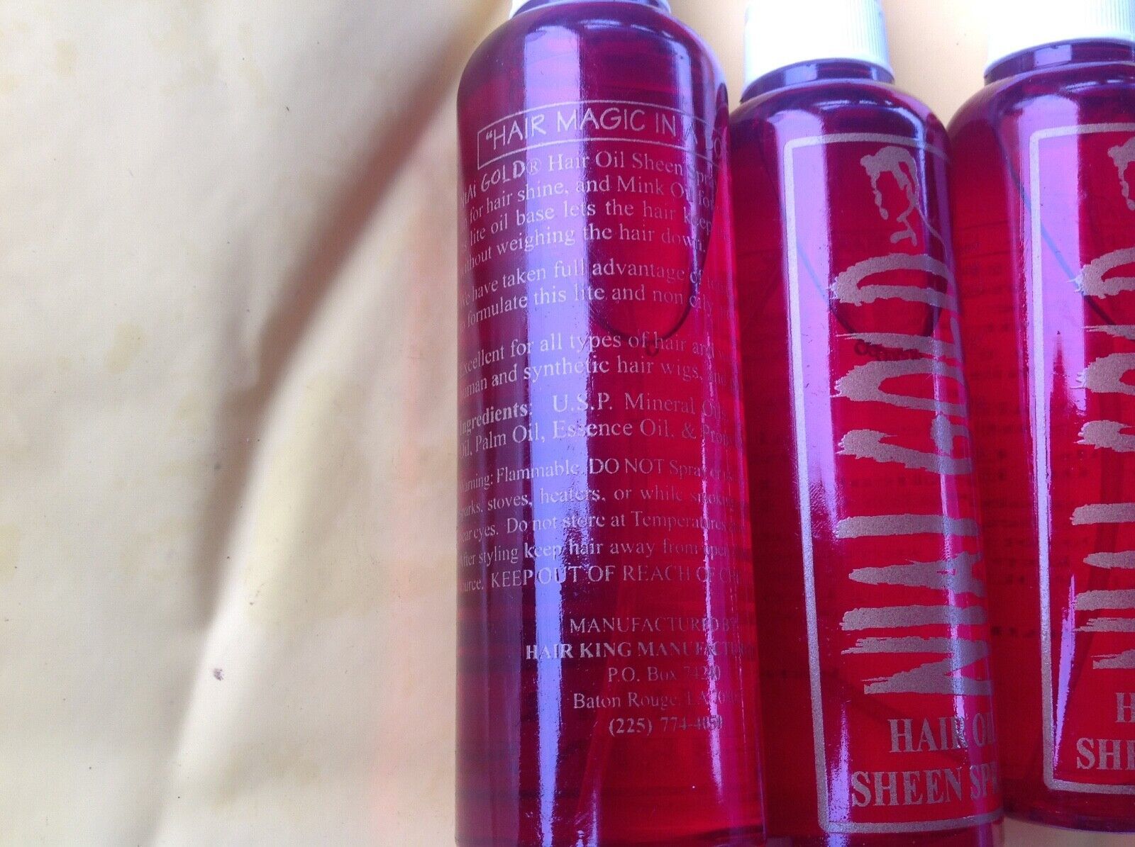 3 each Niai gold Alcohol Free Oil Sheen Spray For Human and Synthetic Hair 8oz lite, in production over 20 years