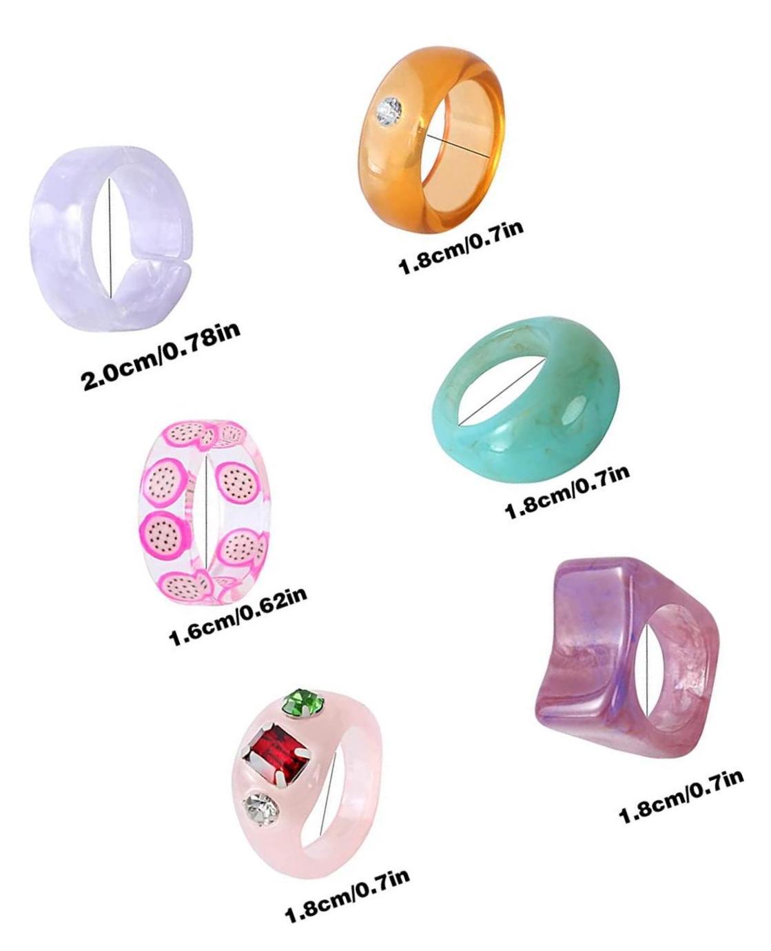 20 Pcs Resin Rings Acrylic Cute Trendy Rings Rings