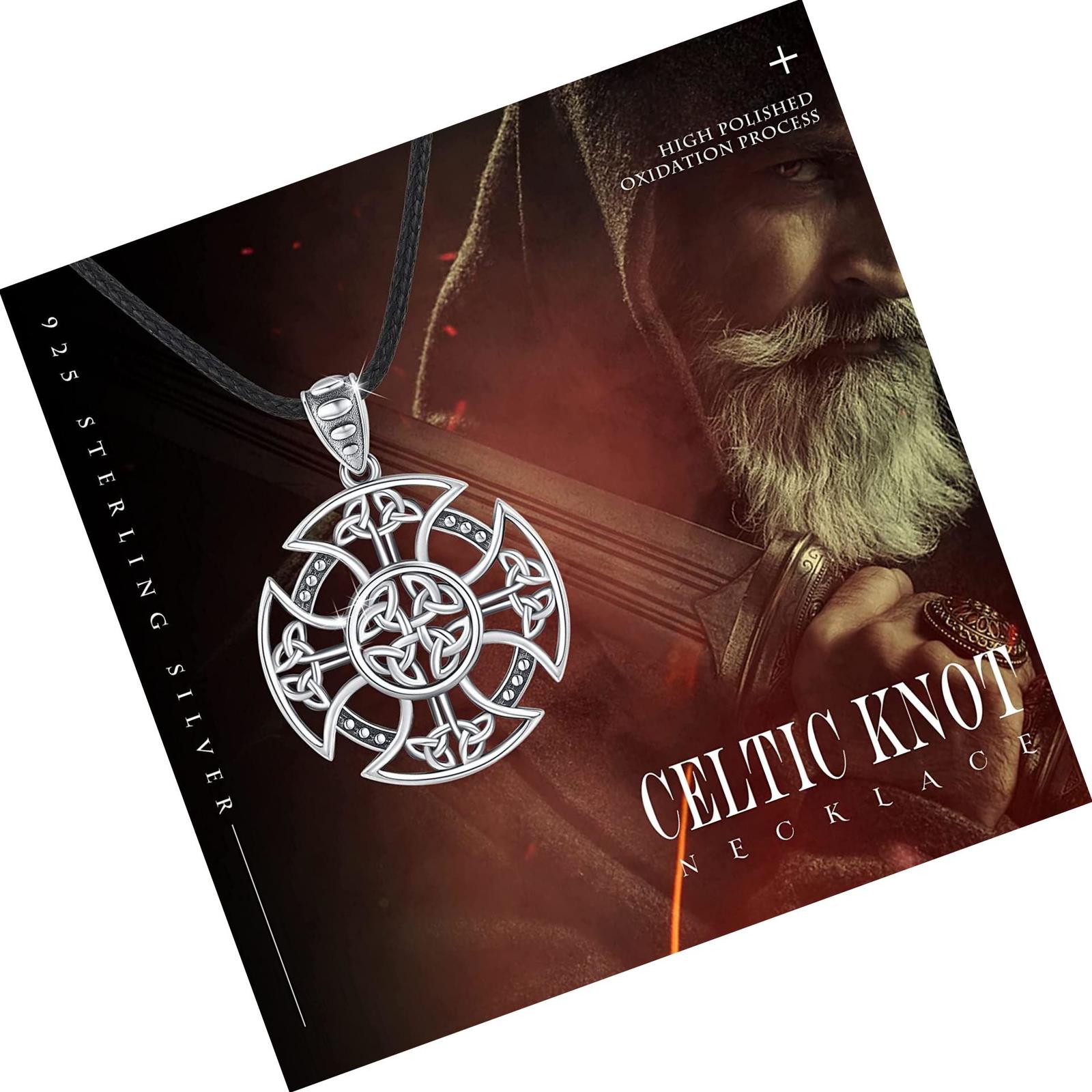 Celtic Cross Viking Necklace for Men Sterling Silver Viking