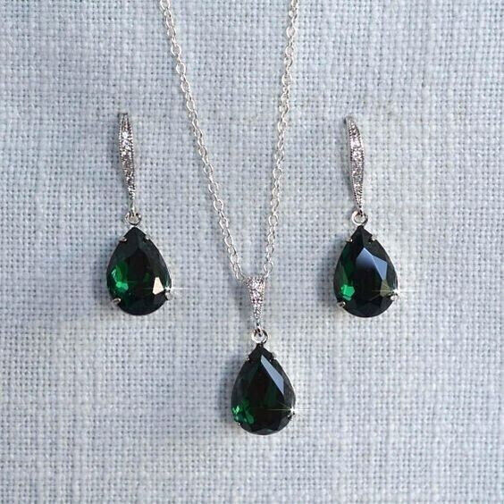 5Ct Pear Cut Simulated Emerald Pendant & Earring's Set 14K White Gold Plated925