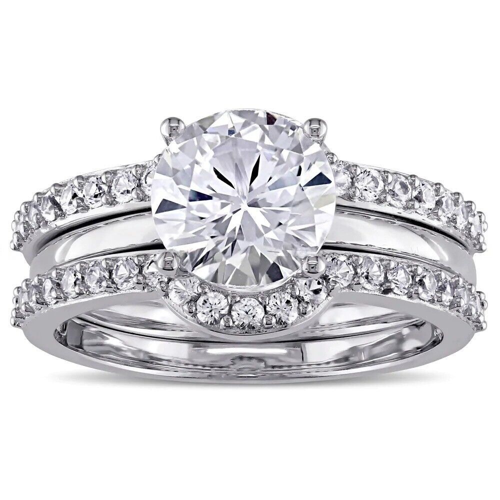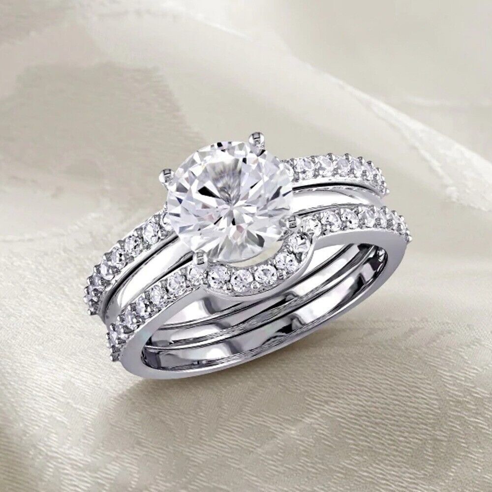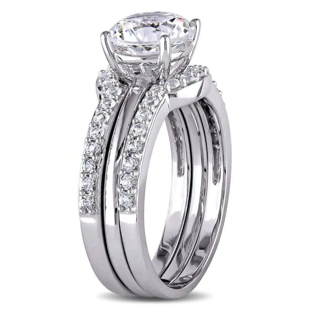 2.50 Ct Round Cut Moissanite Trio Set Engagement Ring 14K White Gold Plated