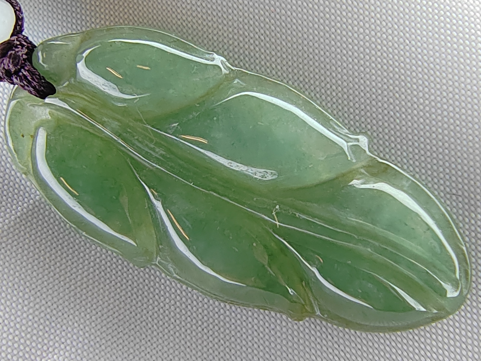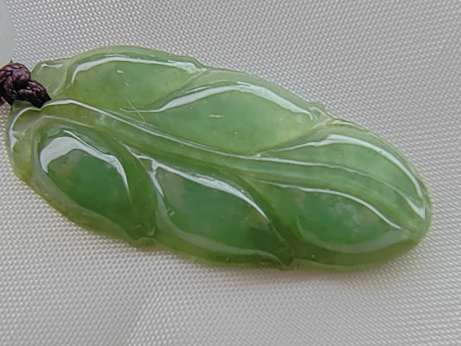 Fine Hand Carving Ice Green Natural Burma Jadeite Jade Leaf Pendant for Prosperity and Longevity