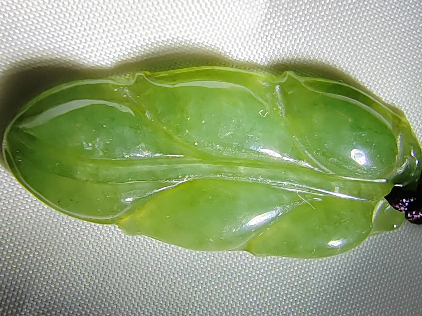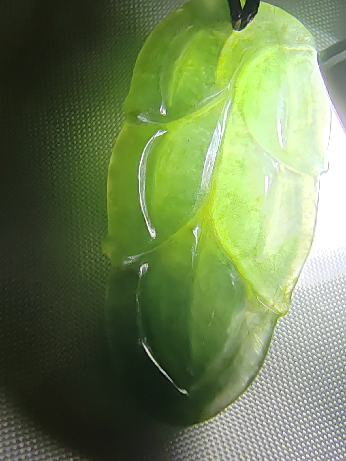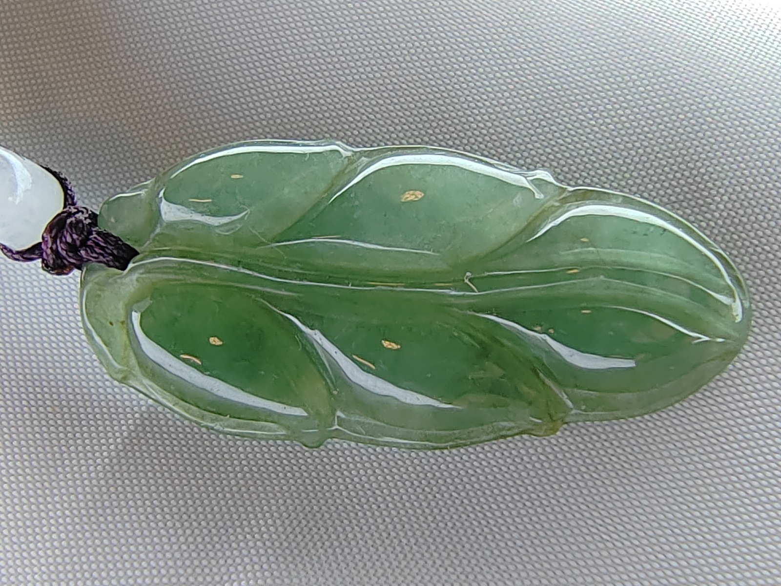 This jadeite pendant is a rare and exquisitely hand-carved piece crafted from Burmese jadeite. It belongs to the category of ice-green jadeite, displaying a delicate and faint green luminescence, evoking a sense of natural tranquility. Through meticulous craftsmanship, it has been fashioned into the shape of a leaf, reminiscent of the graceful dance of foliage, symbolizing the fruition of great endeavors and harboring profound auspicious meanings. Measuring approximately 32.60mm 15.40mm 4.00mm, this pendant is light and delicate. It comes with a certificate, ensuring its authenticity as a natural jadeite creation, thereby enhancing its value and credibility in the eyes of collectors. As a precious gemstone revered in the world of fine jewelry, jadeite is cherished for its unique colors, textures, and rarity. This pendant is not only a work of art but also a testament to cultural heritage and symbolism. Its unquestionable value in the realm of collectibles is self-evident, destined to become a coveted treasure among connoisseurs. Furthermore, the auspicious symbolism it carries adds to its allure. Each leaf symbolizes the vitality and vigor of life, embodying people's aspirations for a bright future. In summary, this jade pendant is not merely an artistic creation but also a representation of symbolism and significance. Its exquisite craftsmanship and unique design make it a treasure in the world of collectibles, embodying a fusion of culture and art.